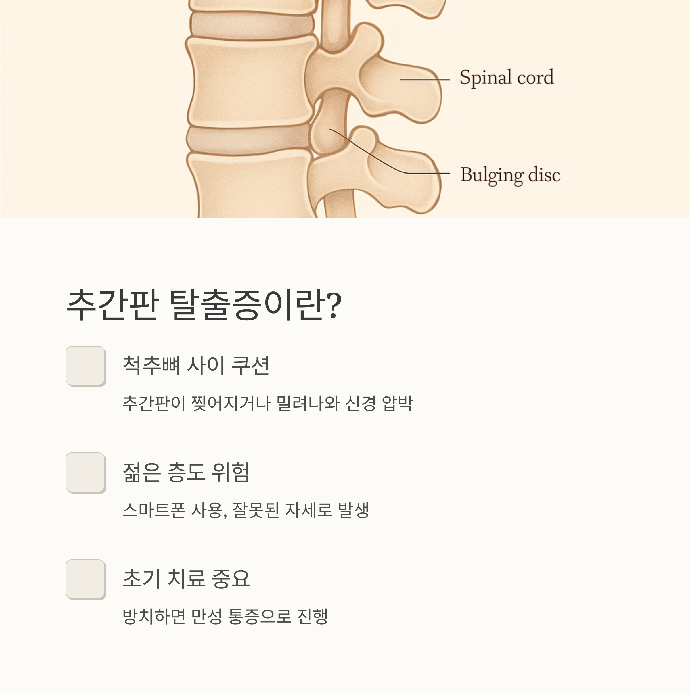 생각만 해도 아찔하죠? 젊은 사람들도 스마트폰 사용이나 잘못된 자세 등으로 쉽게 찾아올 수 있는 질환이니 평소 자세와 생활 습관을 점검하는 것이 중요해요. 특히 무거운 물건을 들거나 갑자기 허리를 삐끗했을 때, 혹은 오랫동안 같은 자세로 앉아 있을 때 통증이 심해지는 경험을 해보셨을 거예요.