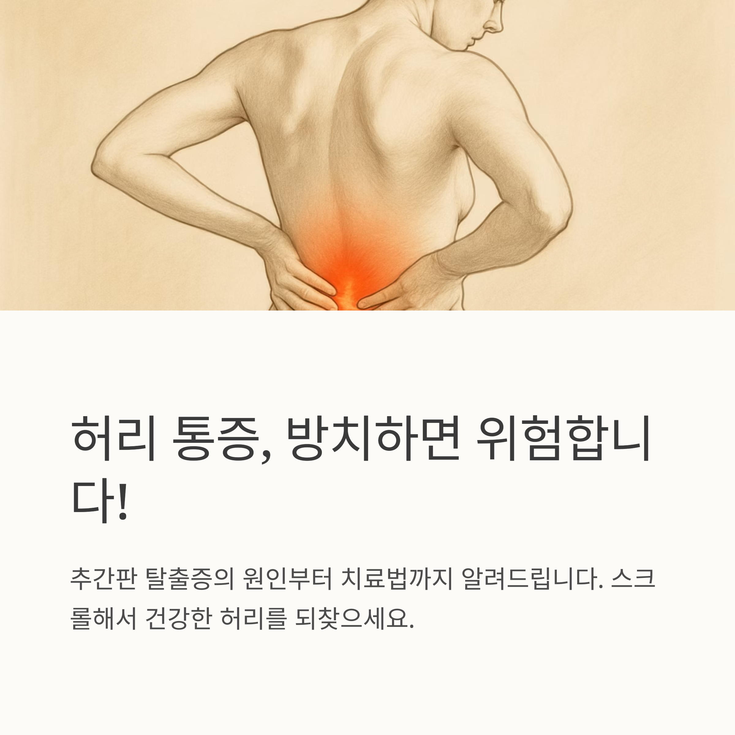 안녕하세요! 오늘은 정확히 알고 관리하는 것이 중요한 '허리 통증'에 대해 속 시원하게 알려드리려고 합니다. 이 글을 통해 허리 통증의 원인과 증상, 그리고 효과적인 치료 및 관리법까지 자세히 이해하실 수 있을 거예요. 함께 건강한 허리를 만들어봐요!