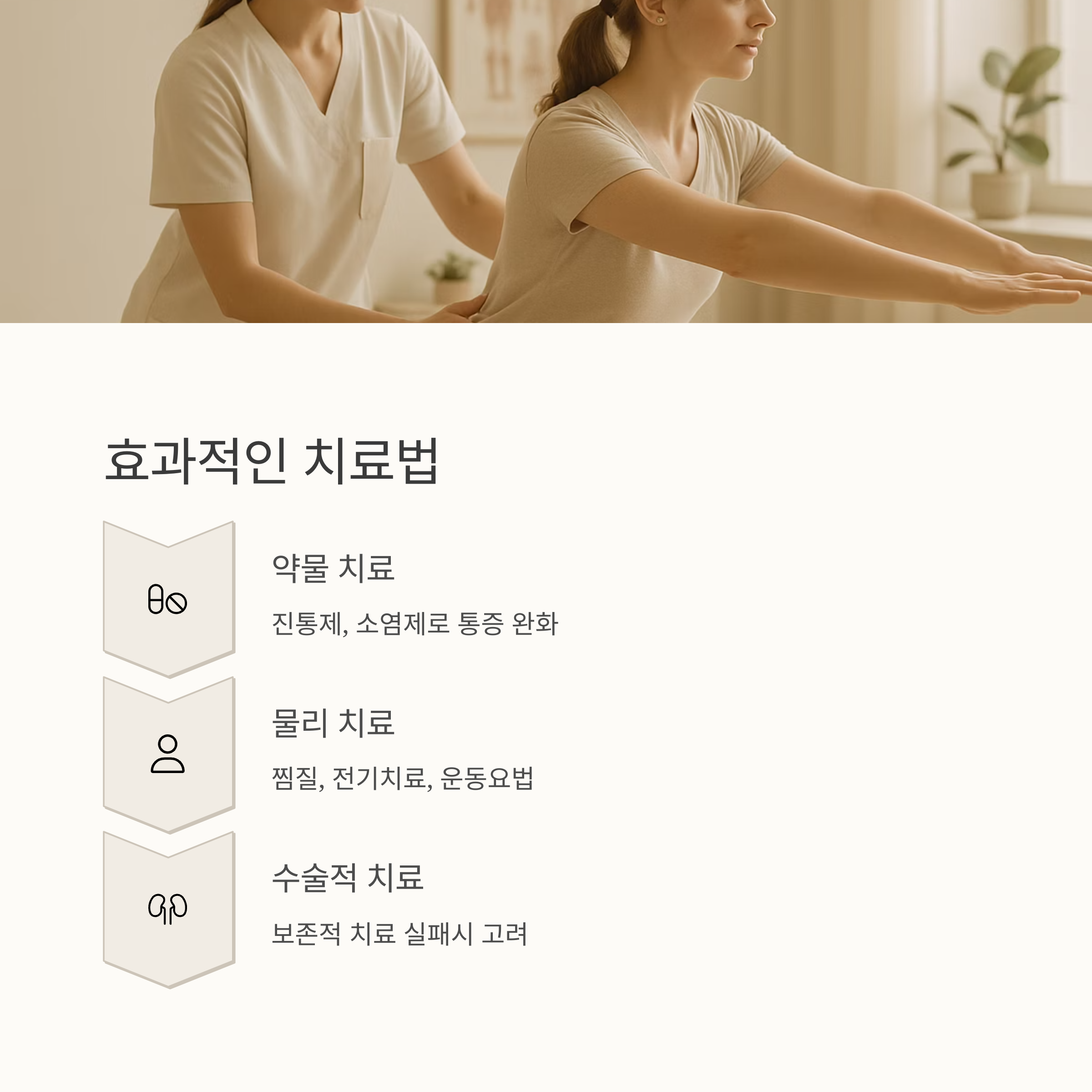 물리치료는 찜질이나 전기치료, 운동요법 등을 통해 허리 근육을 강화시키고 통증을 줄이는 데 도움이 됩니다. 하지만 보존적 치료에도 불구하고 통증이 심하거나 신경학적 증상이 악화된다면 수술적 치료를 고려해야 할 수 있습니다.