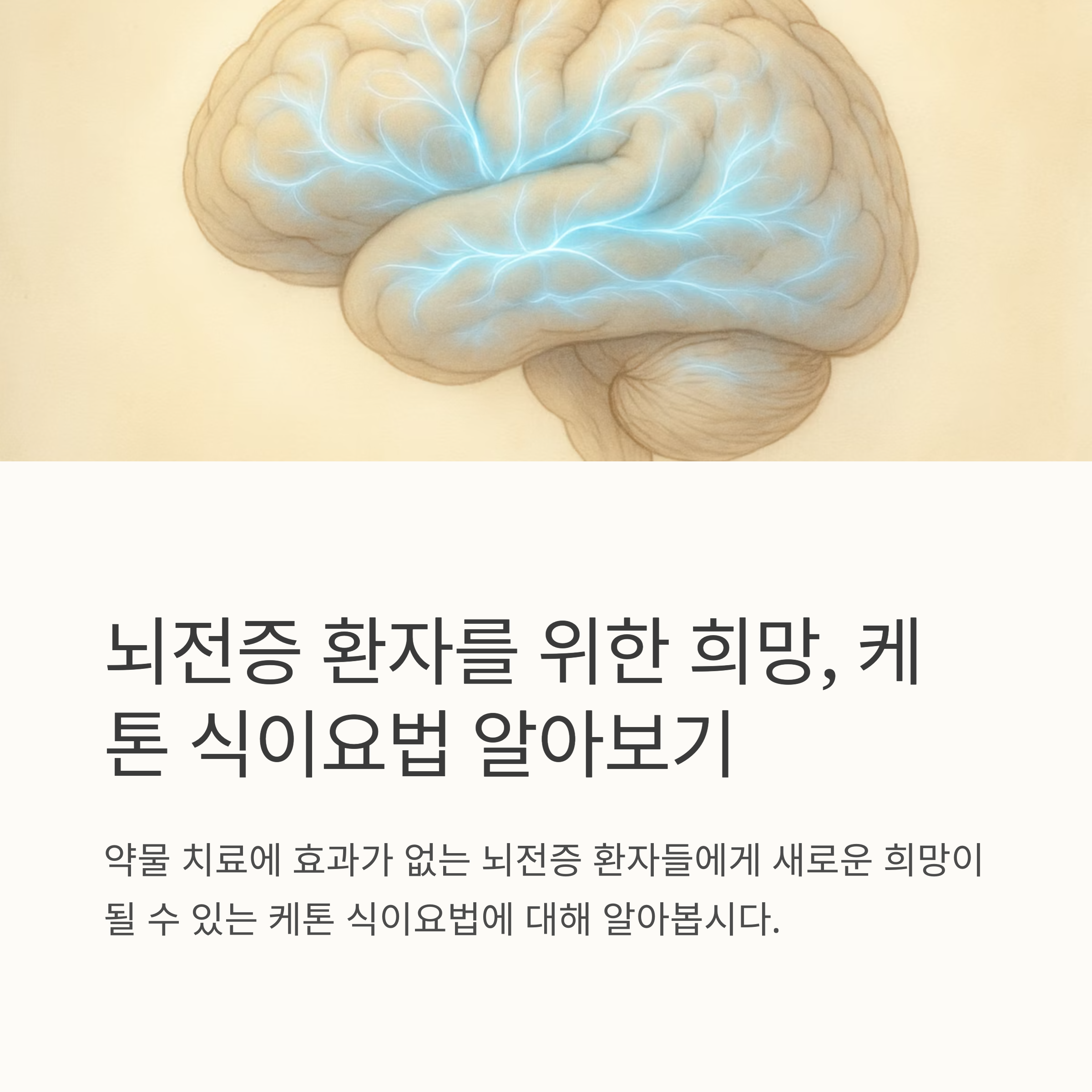 안녕하세요. 오늘은 뇌전증으로 고통받는 분들과 그 가족들에게 희망의 메시지를 전달하고자 합니다. 뇌전증은 단순히 병이 아니라 삶의 질을 좌우하는 심각한 질환이죠. 약물 치료에도 효과를 보지 못하는 경우가 많아 힘든 시간을 보내시는 분들도 많을 거예요. 하지만 포기하지 마세요! 오늘은 뇌전증 치료에 도움이 될 수 있는 '케톤 식이요법'에 대해 자세히 알아보고, 여러분의 삶에 작은 희망의 불씨를 드리고자 합니다. 힘들지만 함께 이겨낼 수 있어요.