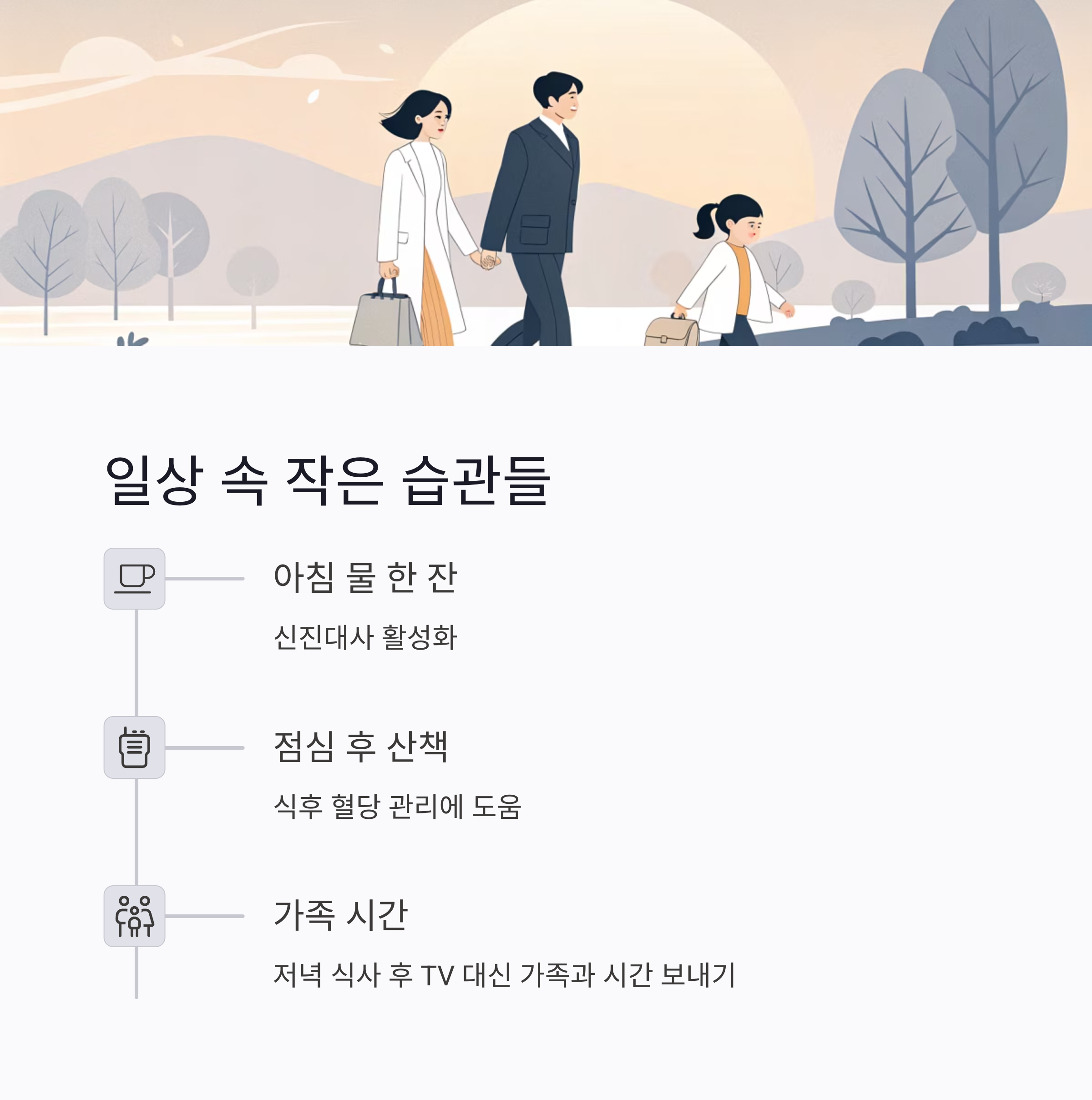 콜레스테롤 관리를 위한 생활 습관은 단순히 식단 조절이나 운동만으로는 부족합니다. 매일 하는 작은 습관들이 모여 큰 변화를 만들어낼 수 있어요. 예를 들어, 아침에 일어나서 물 한 잔 마시는 습관, 점심 식사 후 가볍게 산책하는 습관, 저녁 식사 후 과도한 TV 시청 대신 가족과 함께 시간을 보내는 습관 등은 스트레스를 줄이고 건강한 생활을 유지하는 데 큰 도움이 될 것입니다.