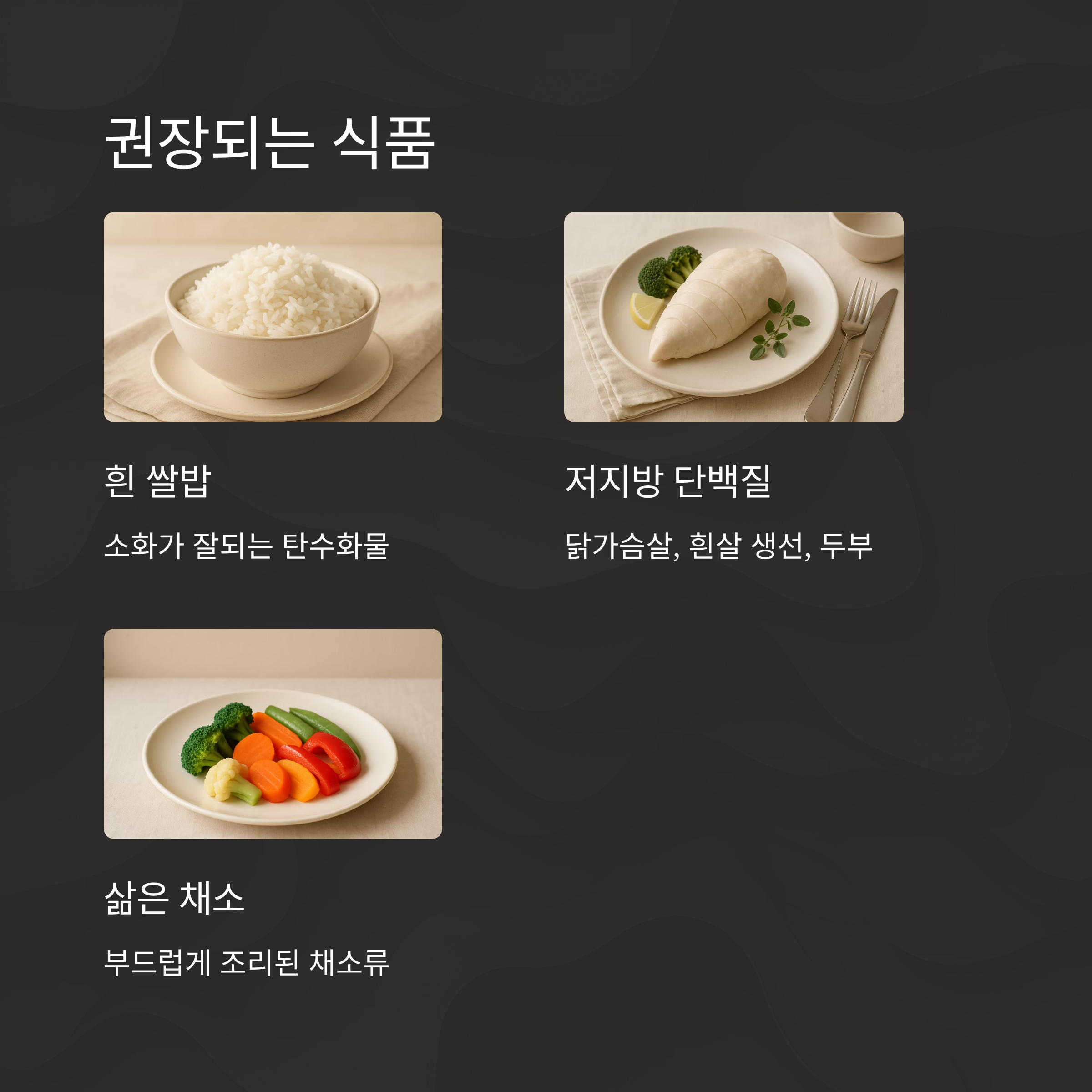 삶거나 찐 채소, 바나나나 사과소스 같은 부드러운 과일도 도움이 된답니다. 특히 연어나 고등어 같은 오메가-3 지방산이 풍부한 생선은 항염 효과가 있어서 도움이 될 수 있어요. 하지만 튀긴 음식, 유제품, 카페인, 탄산음료는 증상을 악화시킬 수 있으니 주의해야 해요. 무엇보다 중요한 건, 자신에게 맞는 음식을 찾는 거예요.