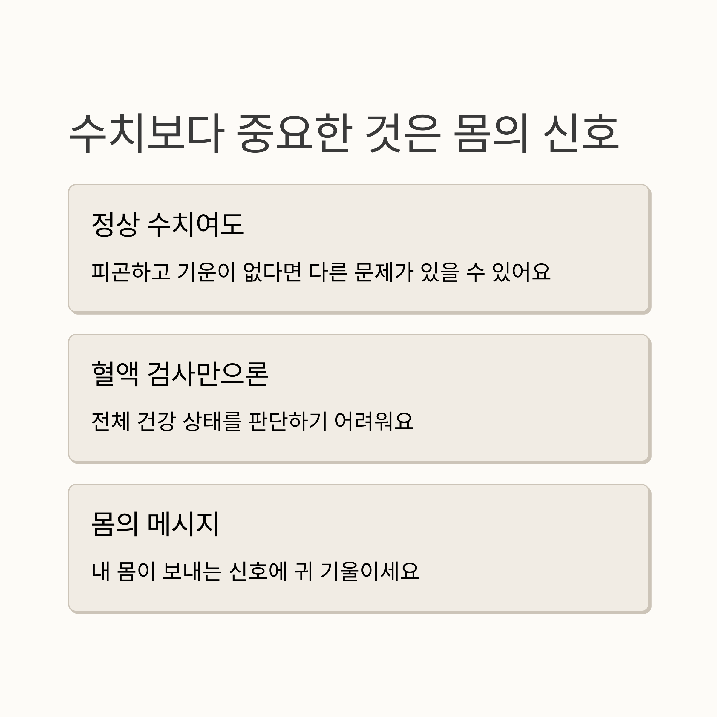 수치에 연연하기보다는 자신의 몸과 마음에 집중하고, 건강한 생활 습관을 유지하며, 필요하다면 전문가의 도움을 받아 적절한 관리를 하는 것이 최선의 방법입니다. 삶의 활력을 되찾고, 더 건강하고 행복한 삶을 누리세요.