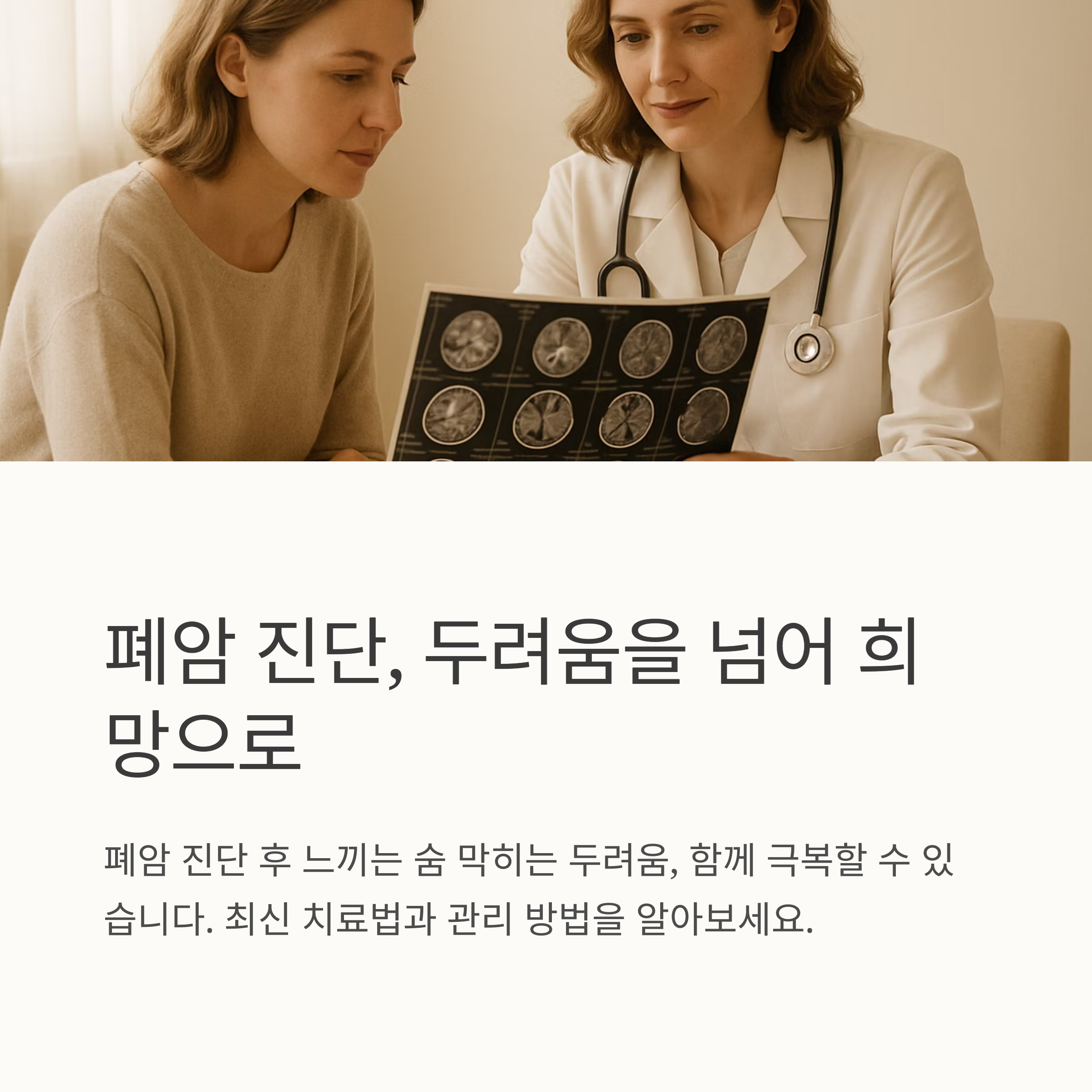 폐암 진단을 받으면 정말 하늘이 무너지는 기분이죠. 숨 막히는 두려움과 혼란스러움에 빠질 수밖에 없어요. 하지만 잠시 숨을 고르고, 차분히 앞으로 나아갈 방법을 찾아봐요. 우선, 가장 중요한 건 정확한 진단입니다. 병원에서는 여러 검사를 통해 암의 크기, 종류, 전이 여부 등을 확인하게 될 거예요.