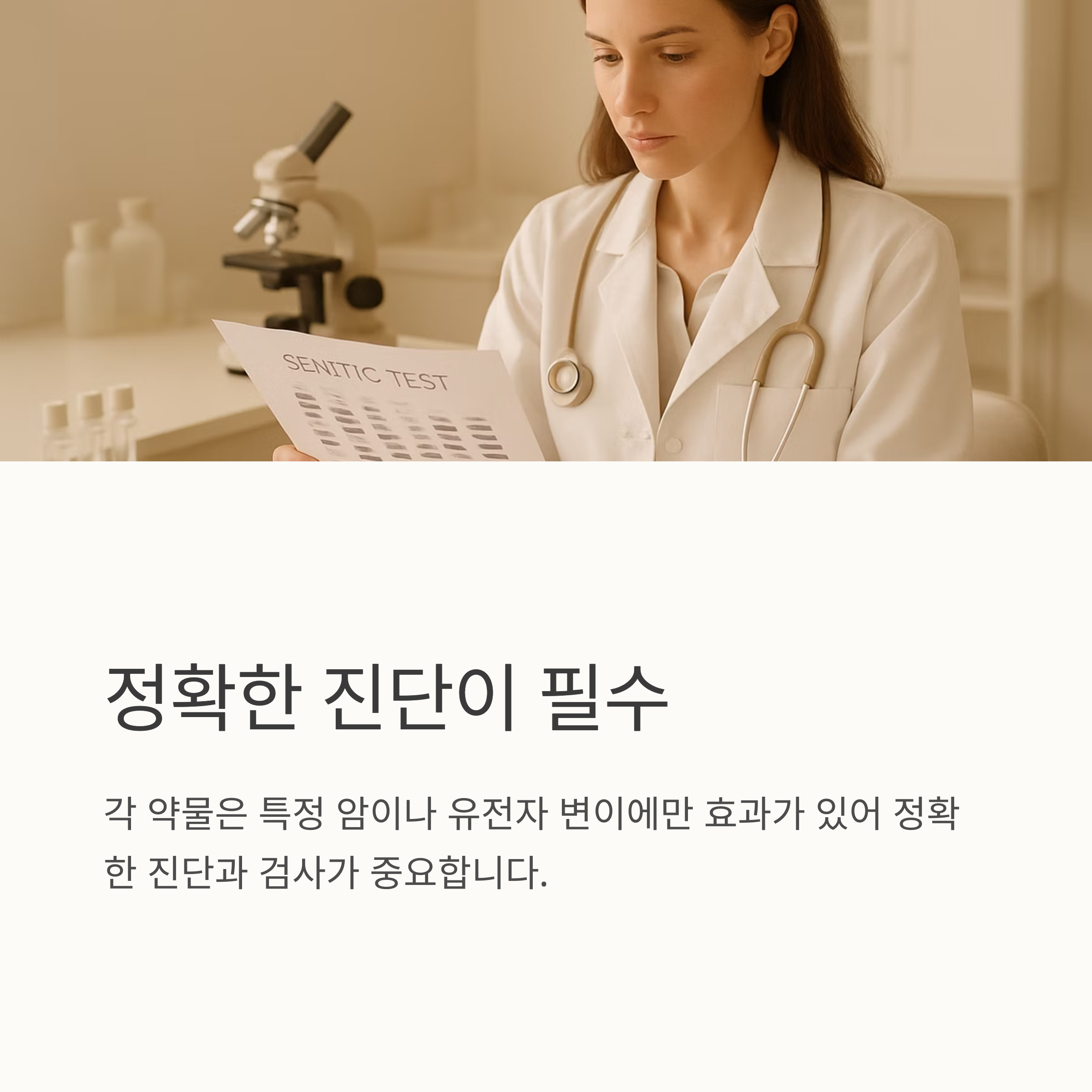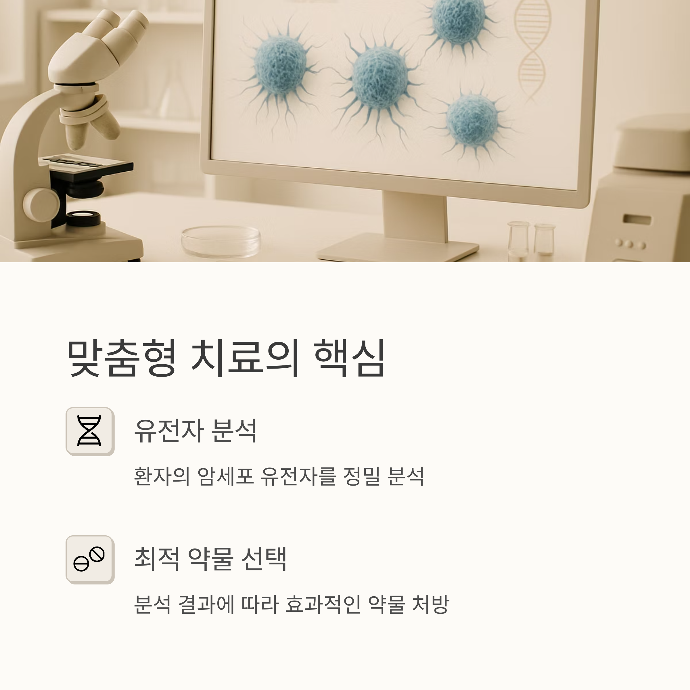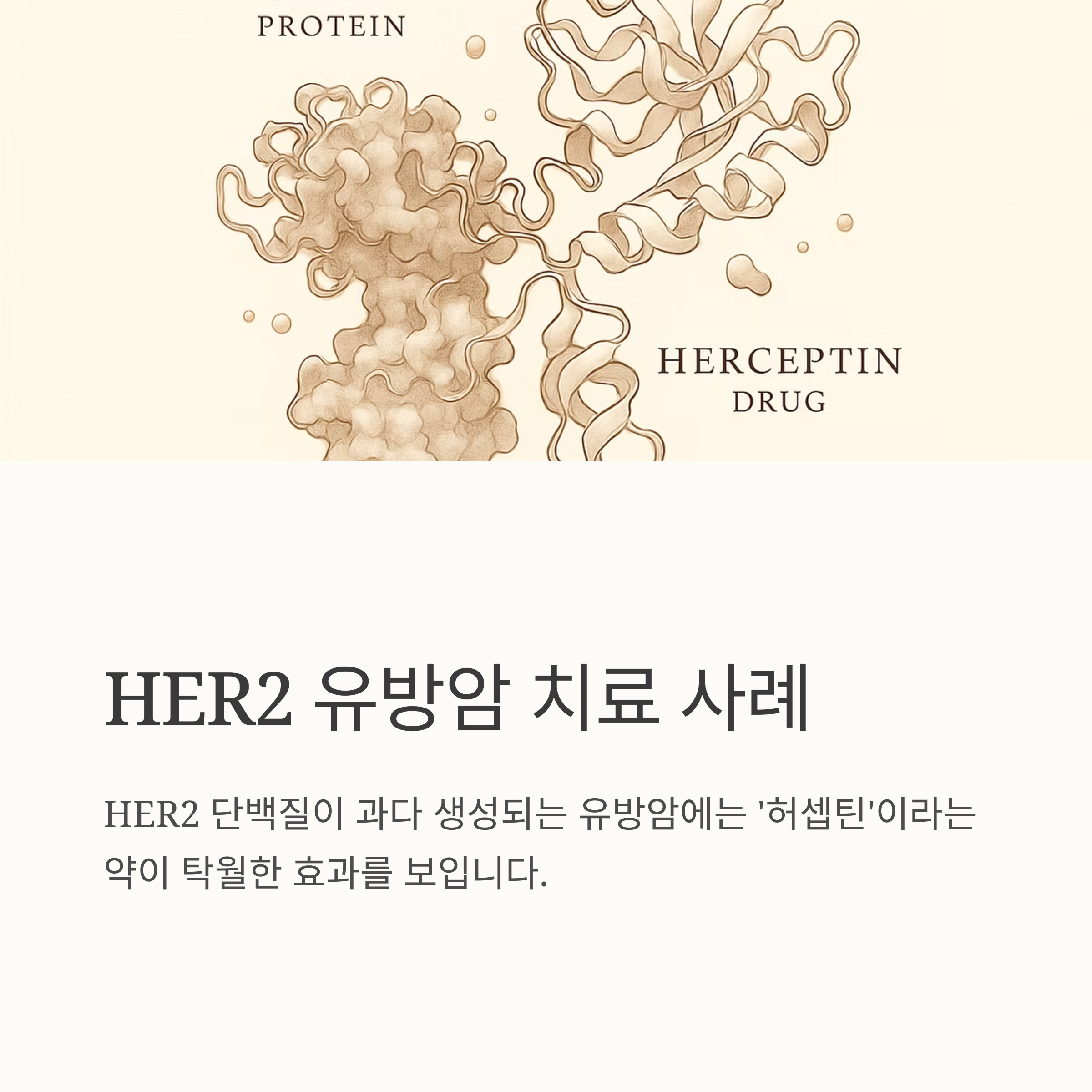 표적 항암 치료의 핵심은 바로 '맞춤형'이라는 점입니다. 환자분의 암세포 유전자를 분석해서 가장 효과적인 약을 선택하거든요. 예를 들어, HER2라는 단백질이 과다하게 생성되는 유방암에는 '허셉틴'이라는 약이 탁월한 효과를 보입니다. 내 몸에 꼭 맞는 '맞춤 정장' 같은 치료라고 생각하면 쉬울 거예요. 물론 모든 암에 효과가 있는 것은 아니고, 효과를 보기 위해서는 꾸준한 표적 항암 치료가 필요합니다. 하지만 암과의 싸움에서 희망적인 무기가 하나 더 생긴 거죠.
