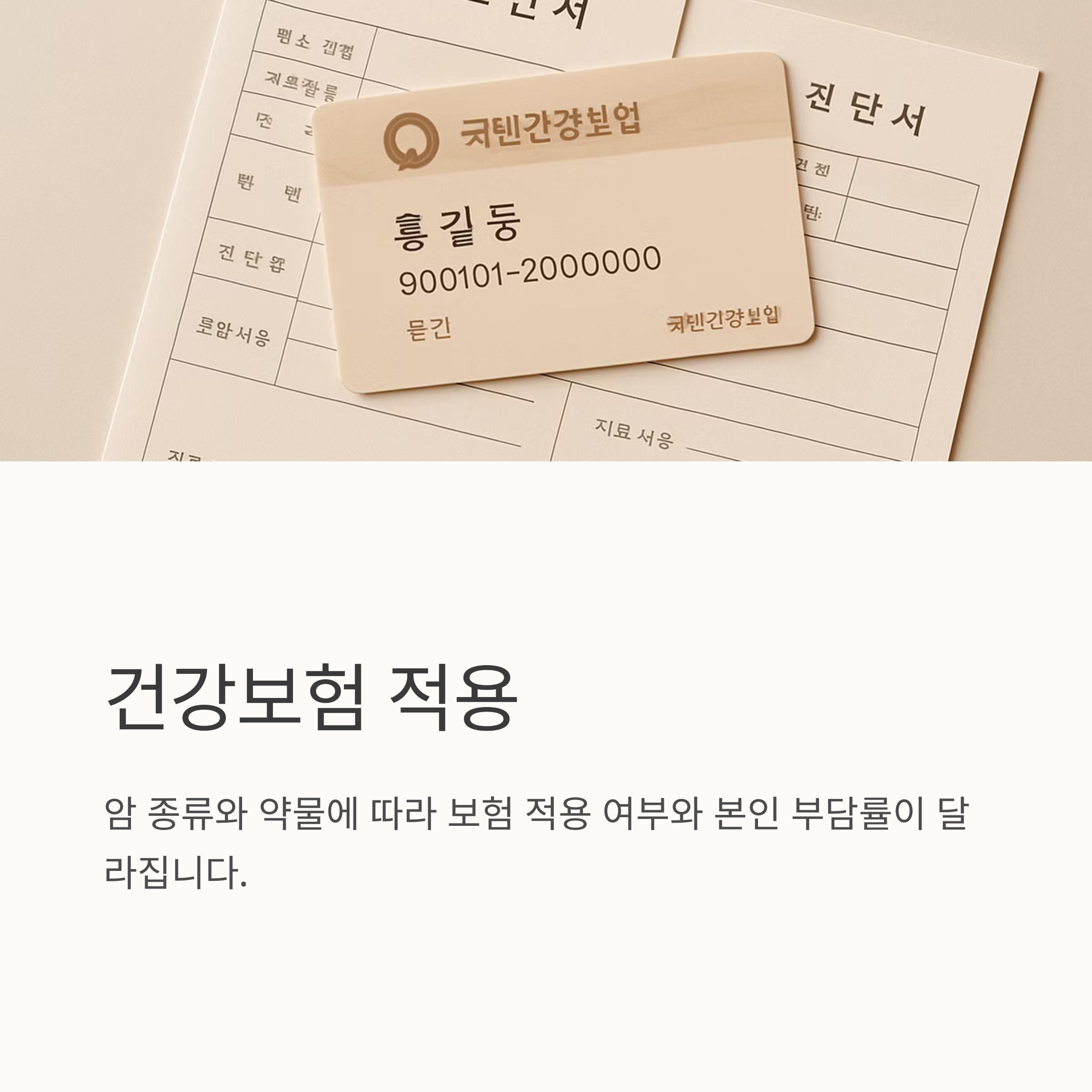 표적 항암 치료 비용이 부담스럽지만, 다행히도 건강보험 적용을 받을 수 있는 경우가 있습니다. 암 종류와 사용하는 약물에 따라 보험 적용 여부와 본인 부담률이 달라지기 때문에, 주치의와 상담하여 정확한 정보를 얻는 것이 중요합니다. 보험 적용이 되면 비용 부담이 크게 줄어들 수 있으니, 미리 알아보고 준비하는 것이 좋겠죠.
