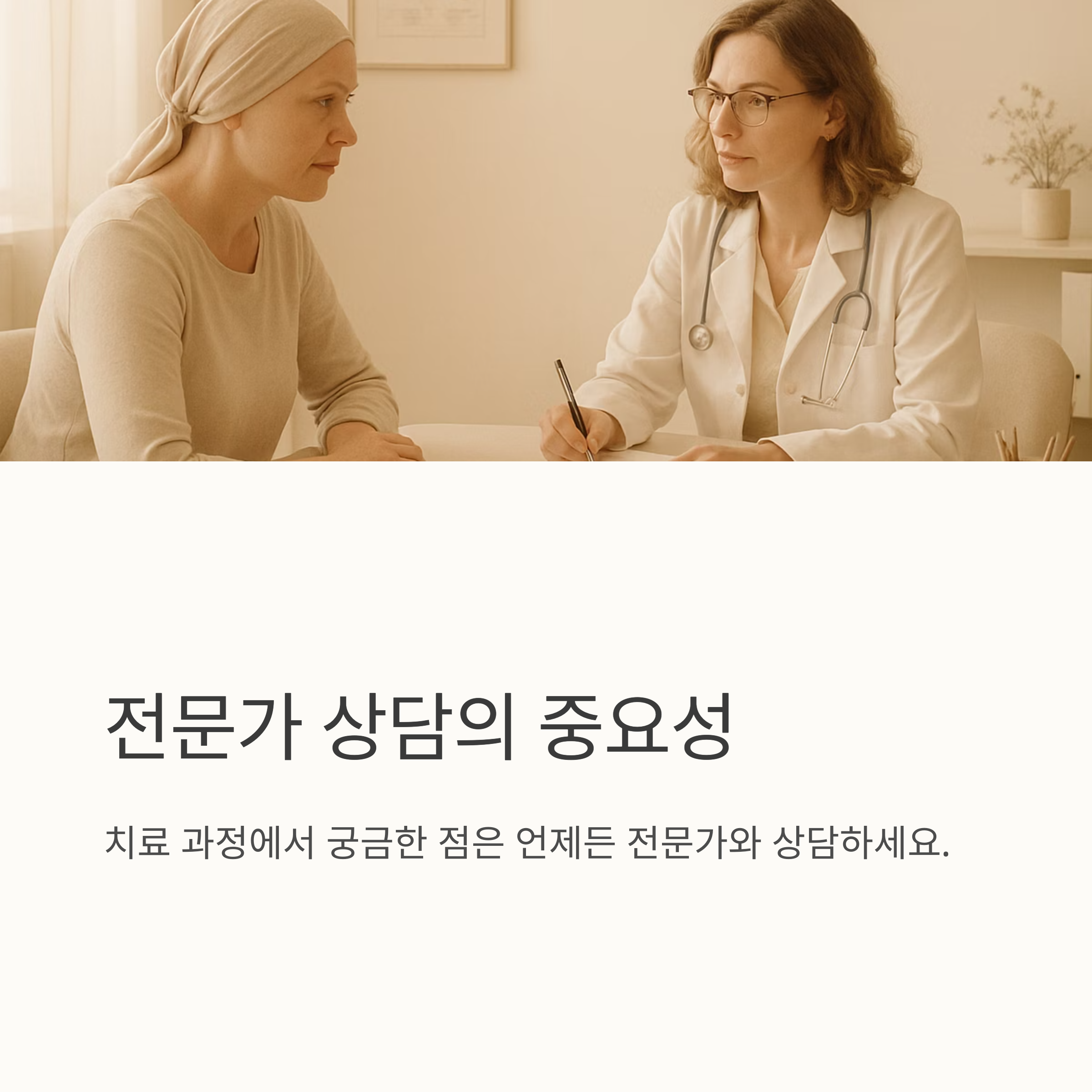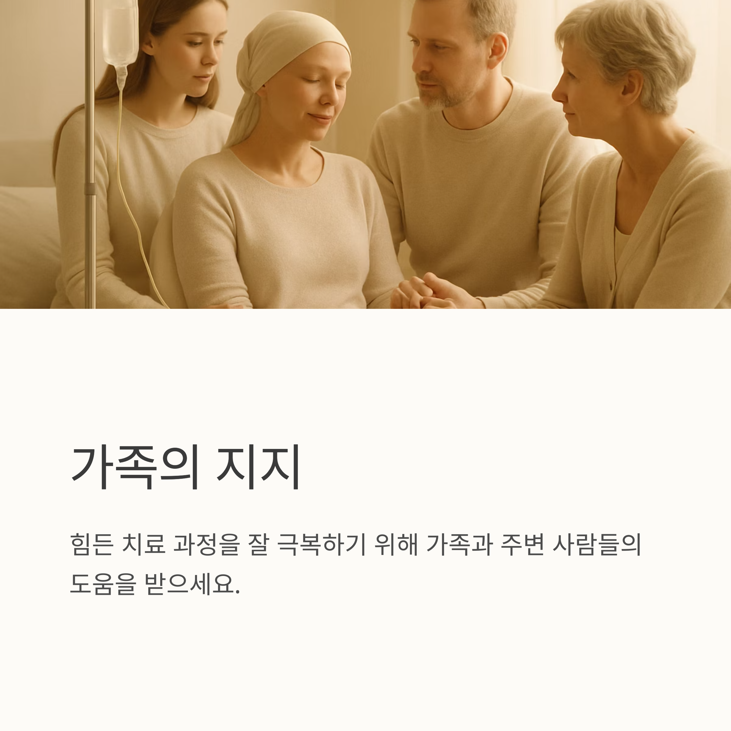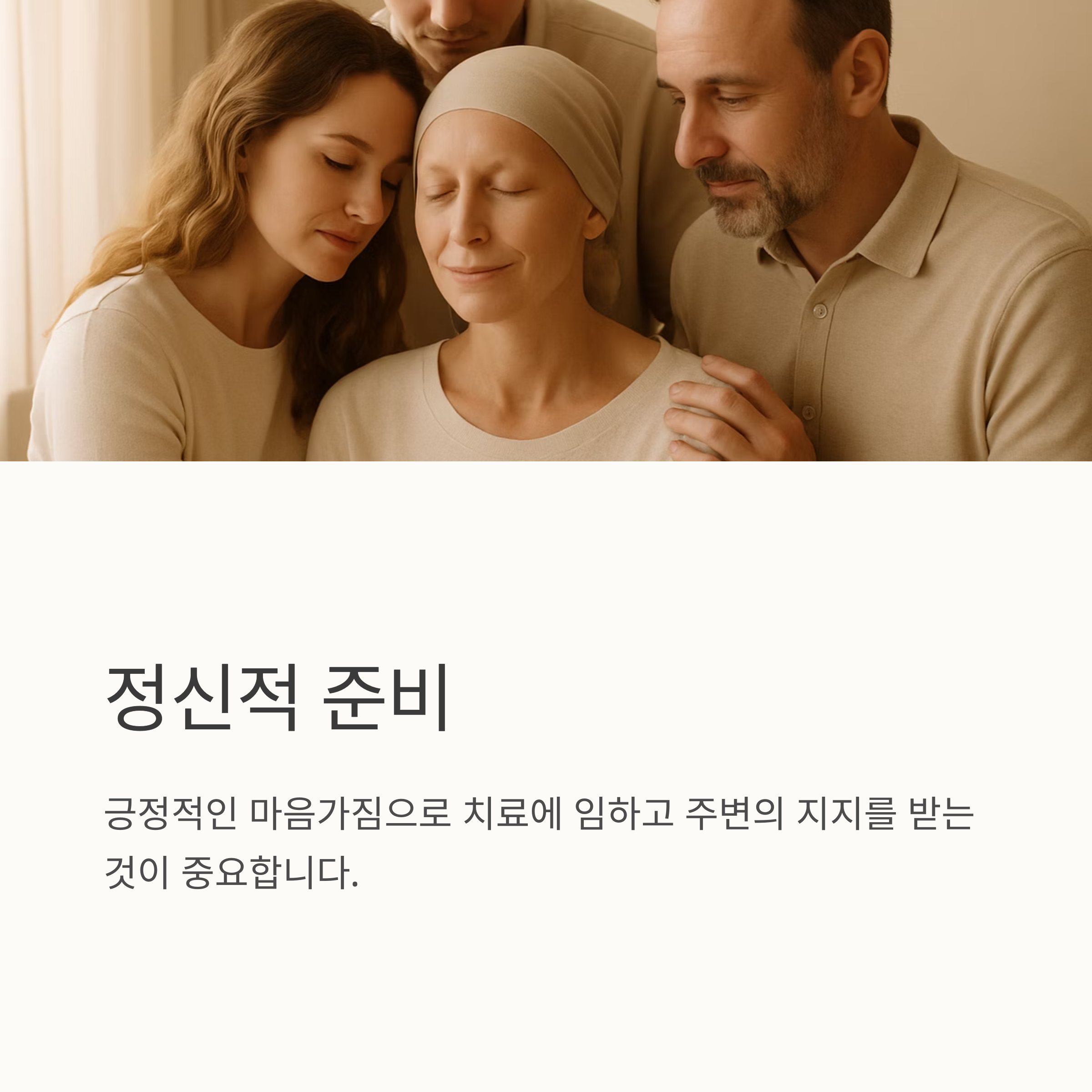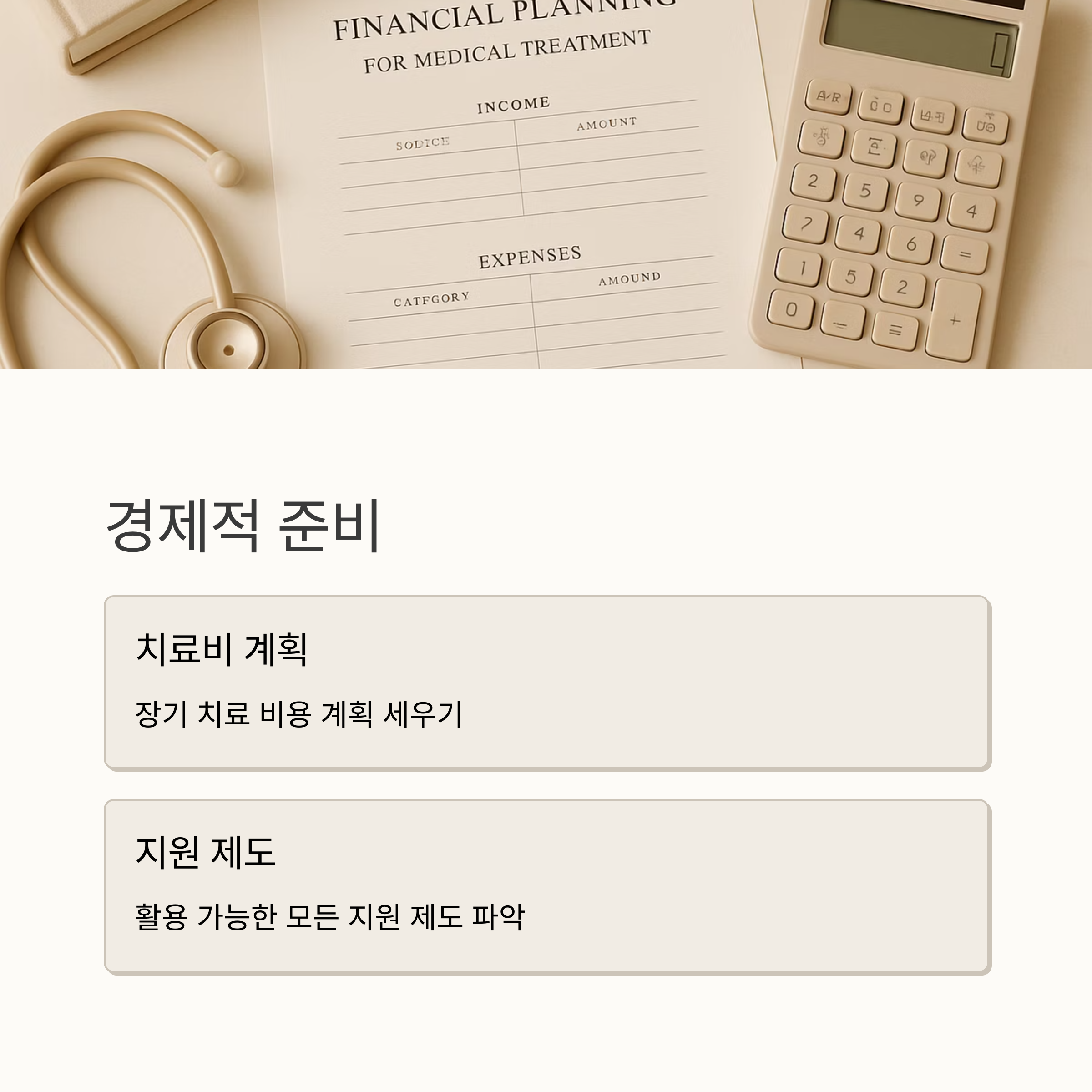 마지막으로, 정신적으로나 경제적으로 힘든 시기를 잘 극복할 수 있도록 가족과 주변 사람들의 지지와 도움을 받는 것이 좋습니다. 힘든 치료 과정이지만, 긍정적인 마음가짐과 철저한 준비를 통해 잘 헤쳐나갈 수 있다는 것을 기억하세요.