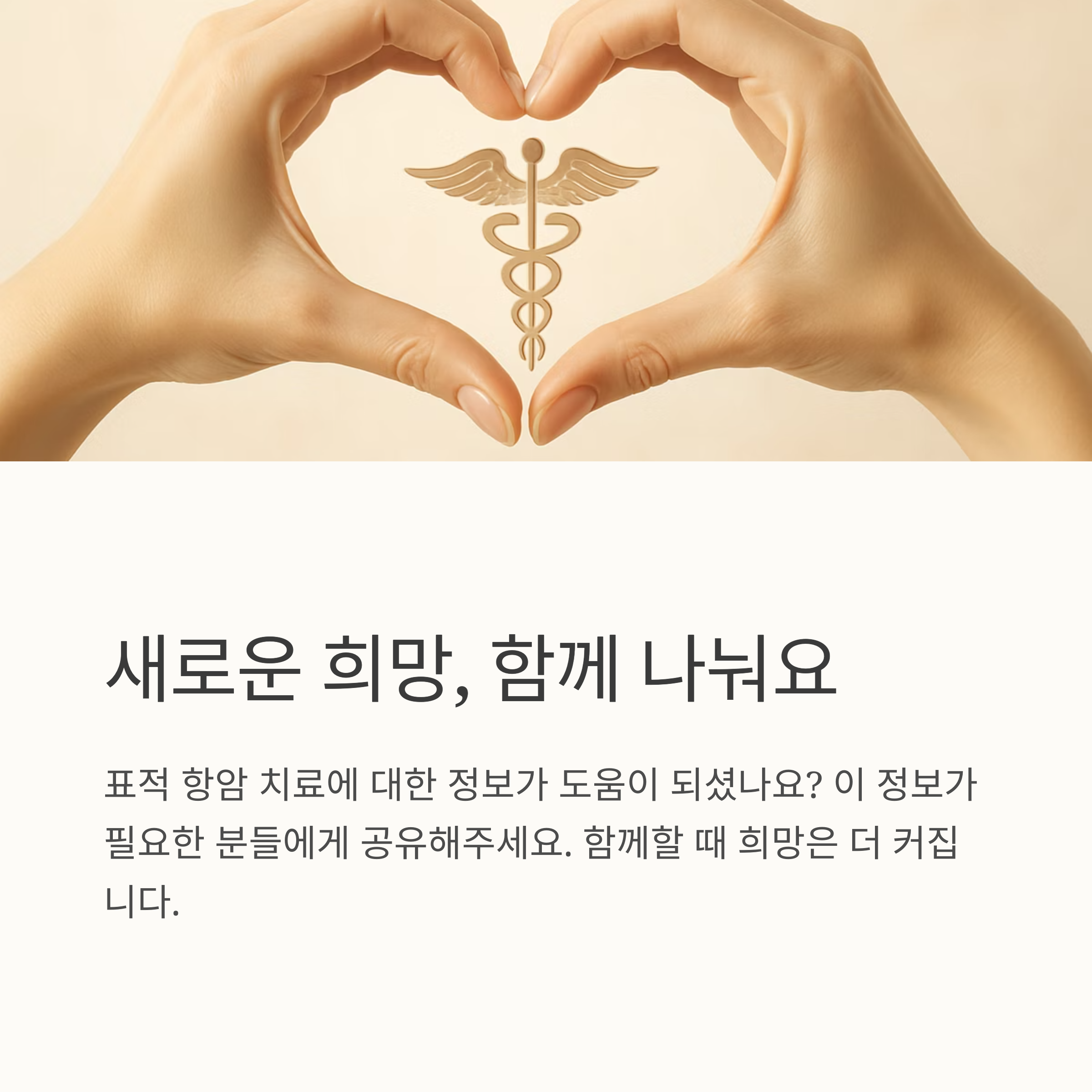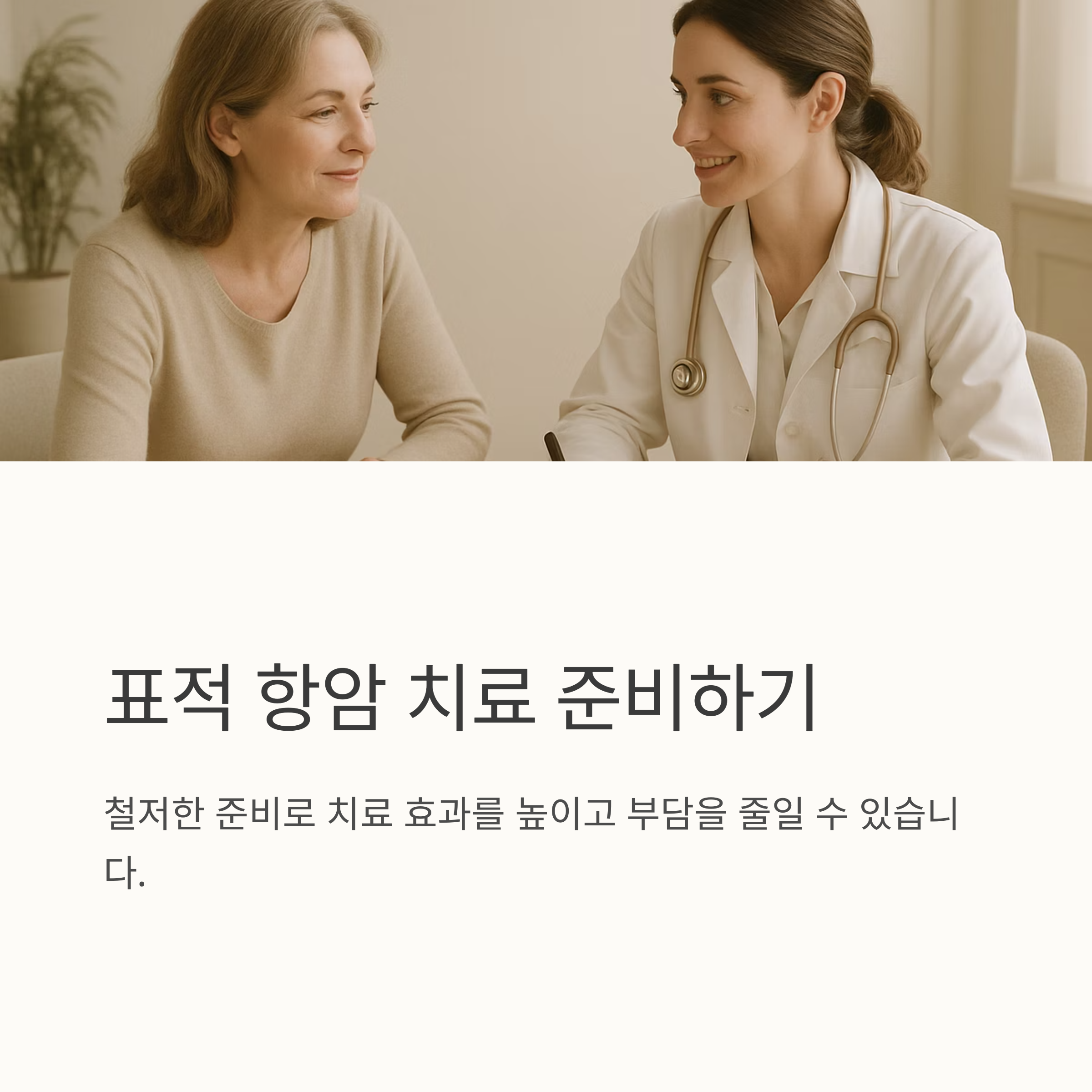 표적 항암 치료는 암 환자들에게 새로운 희망을 주는 최신 치료법입니다. 하지만 표적 항암 치료 비용과 보험, 준비 과정 등에 대한 충분한 이해가 필요합니다. 이 글이 여러분의 궁금증을 해소하고, 치료 과정을 잘 준비하는 데 도움이 되었기를 바랍니다.