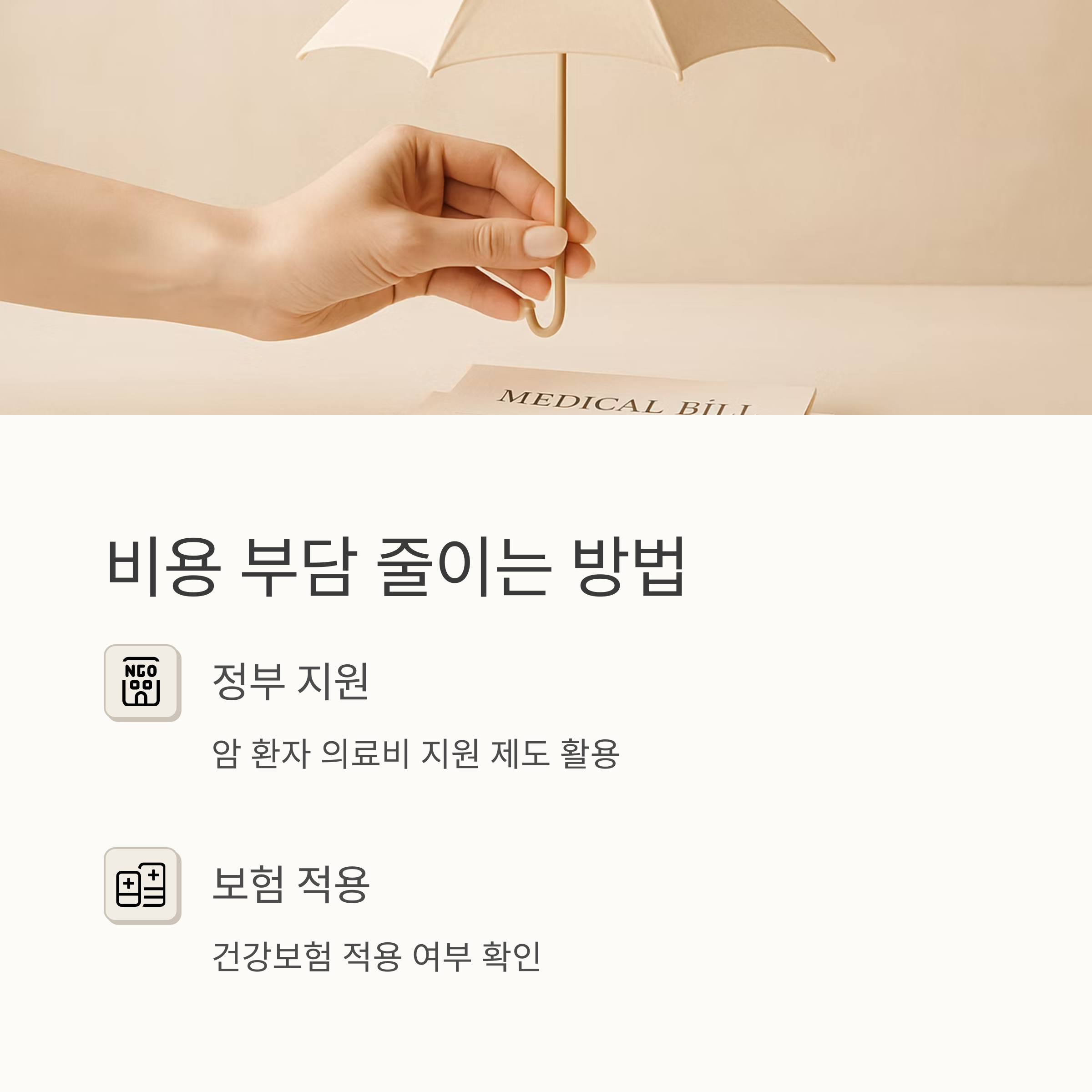 정부 지원이나 보험 적용을 통해 표적 항암 치료 비용 부담을 줄일 수 있는 방법들이 있습니다. 국민건강보험공단 홈페이지나 주치의와 상담을 통해 자세한 정보를 확인해보는 것을 추천드립니다. 또한, 경제적인 어려움 때문에 치료를 포기하는 일이 없도록 정부의 다양한 지원 정책을 활용하는 것도 좋은 방법입니다. 표적 항암 치료 비용 때문에 치료를 망설이지 마시고, 전문가와 상담하여 최선의 방법을 찾아보세요.