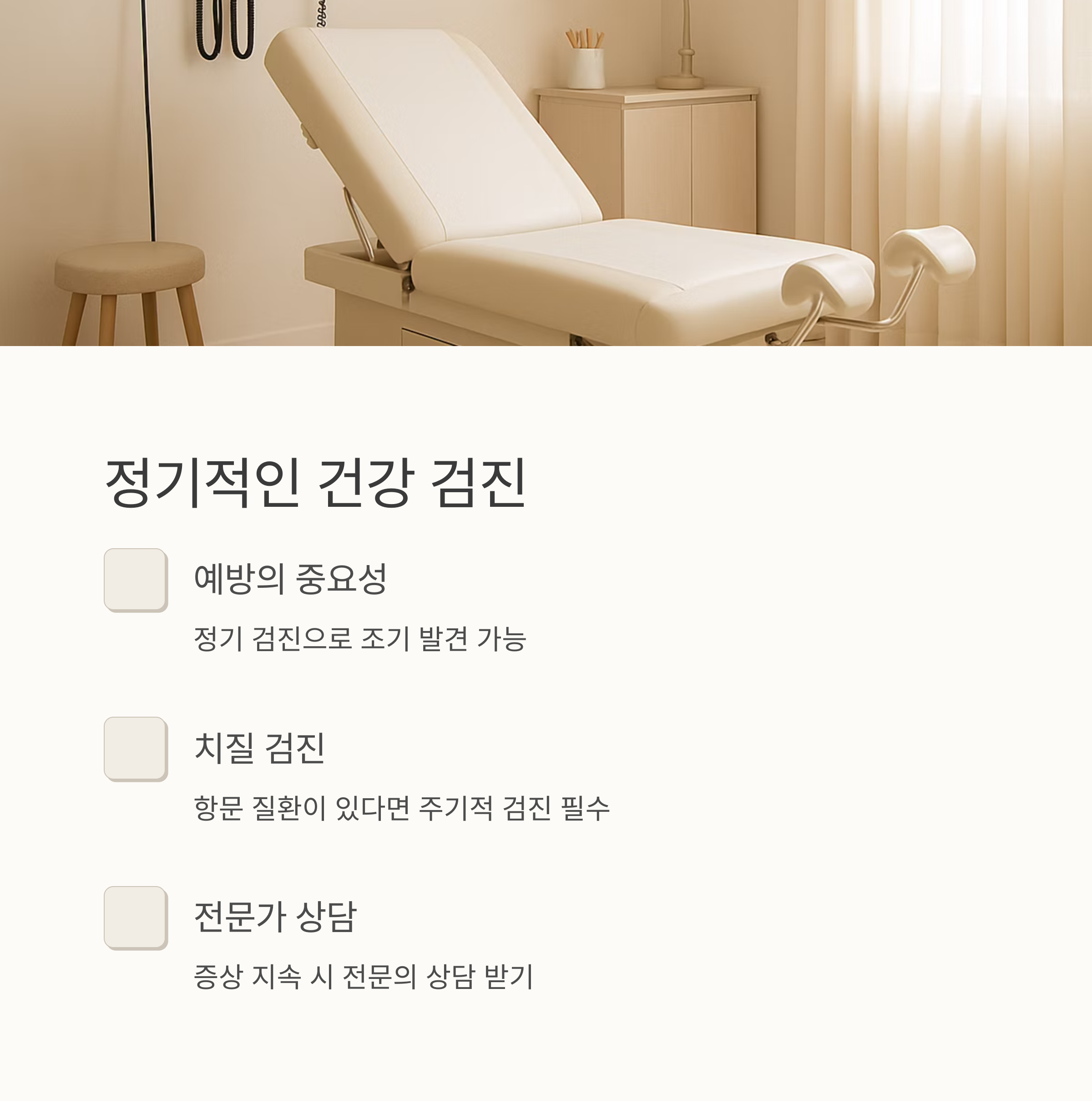 하지만 이 체크리스트는 참고용일 뿐, 정확한 진단은 의사의 진찰을 통해 받아야 합니다. 자가 진단 결과가 긍정적이더라도, 주저 말고 병원에 방문해서 정확한 진단을 받는 것이 가장 중요합니다. 정확한 진단을 통해서만 적절한 치료를 받을 수 있고, 증상 악화를 예방할 수 있다는 사실, 잊지 마세요.