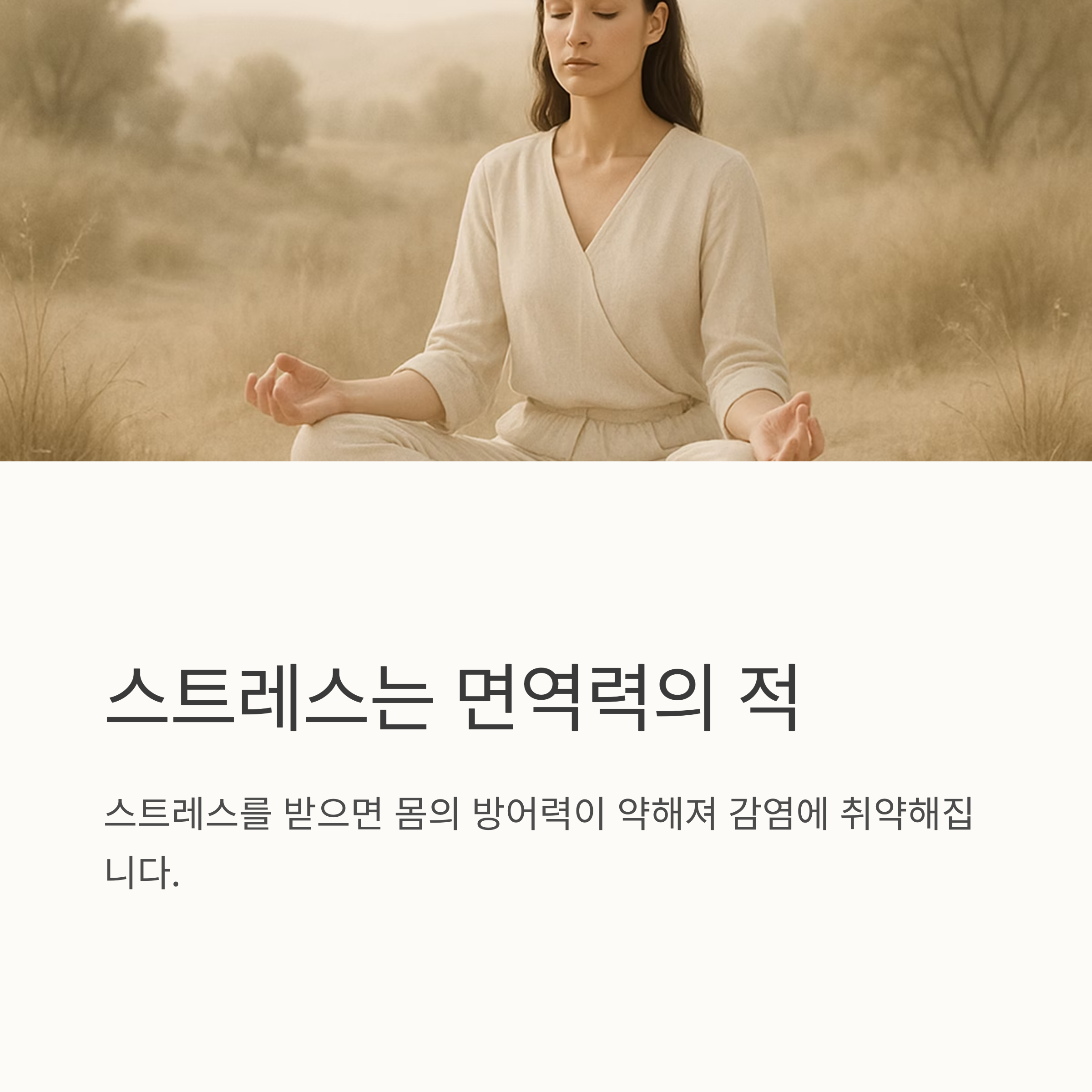 또, 스트레스는 면역력의 가장 큰 적이라고 할 수 있어요. 스트레스를 받으면 몸의 방어력이 약해져서 감염에 취약해지고 만성 질환 위험도 높아진답니다. 명상, 요가, 깊은 호흡 등 스트레스를 해소할 수 있는 방법들을 찾아보고 꾸준히 실천해보세요. 가벼운 산책이나 좋아하는 취미 활동을 통해 마음의 평화를 찾는 것도 훌륭한 방법이에요.