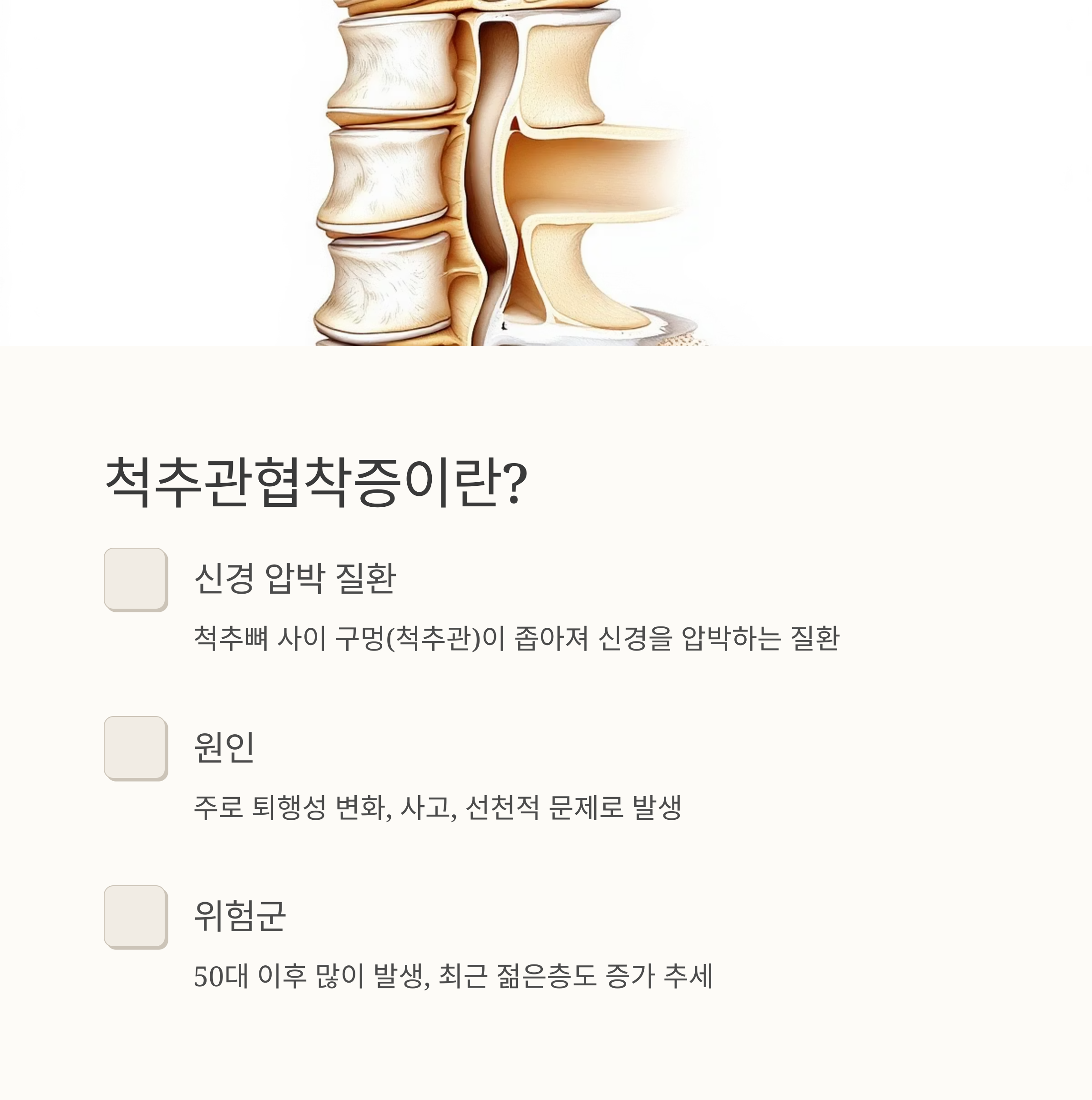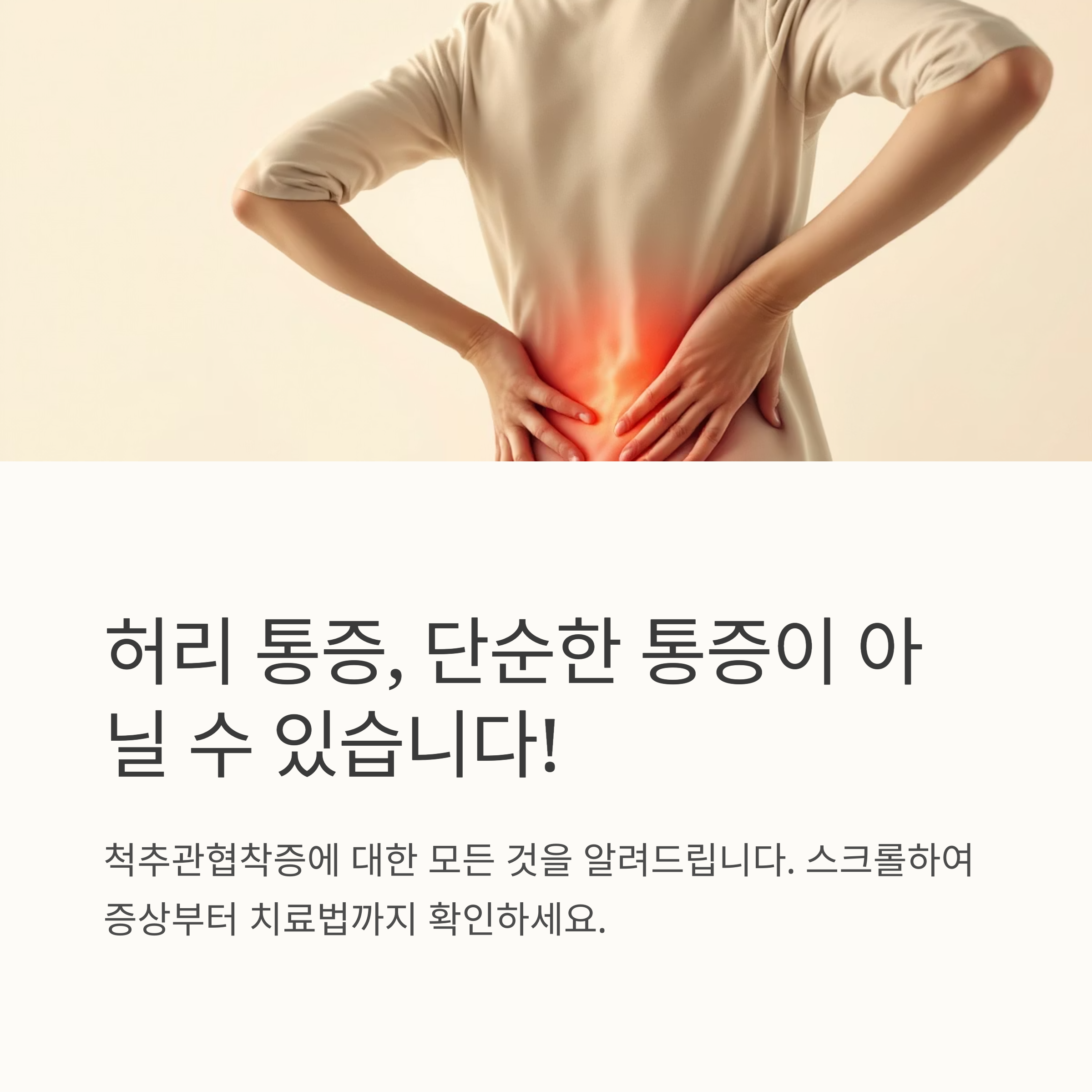 척추관협착증은 단순한 허리 통증이 아닐 수 있습니다. 오늘은 척추관협착증에 대한 궁금증을 속 시원히 해결해 드릴게요. 허리 통증으로 고생하시는 분들께 도움이 될 수 있도록 자세하고 친절하게 설명해 드릴 테니, 편안한 마음으로 읽어주세요!