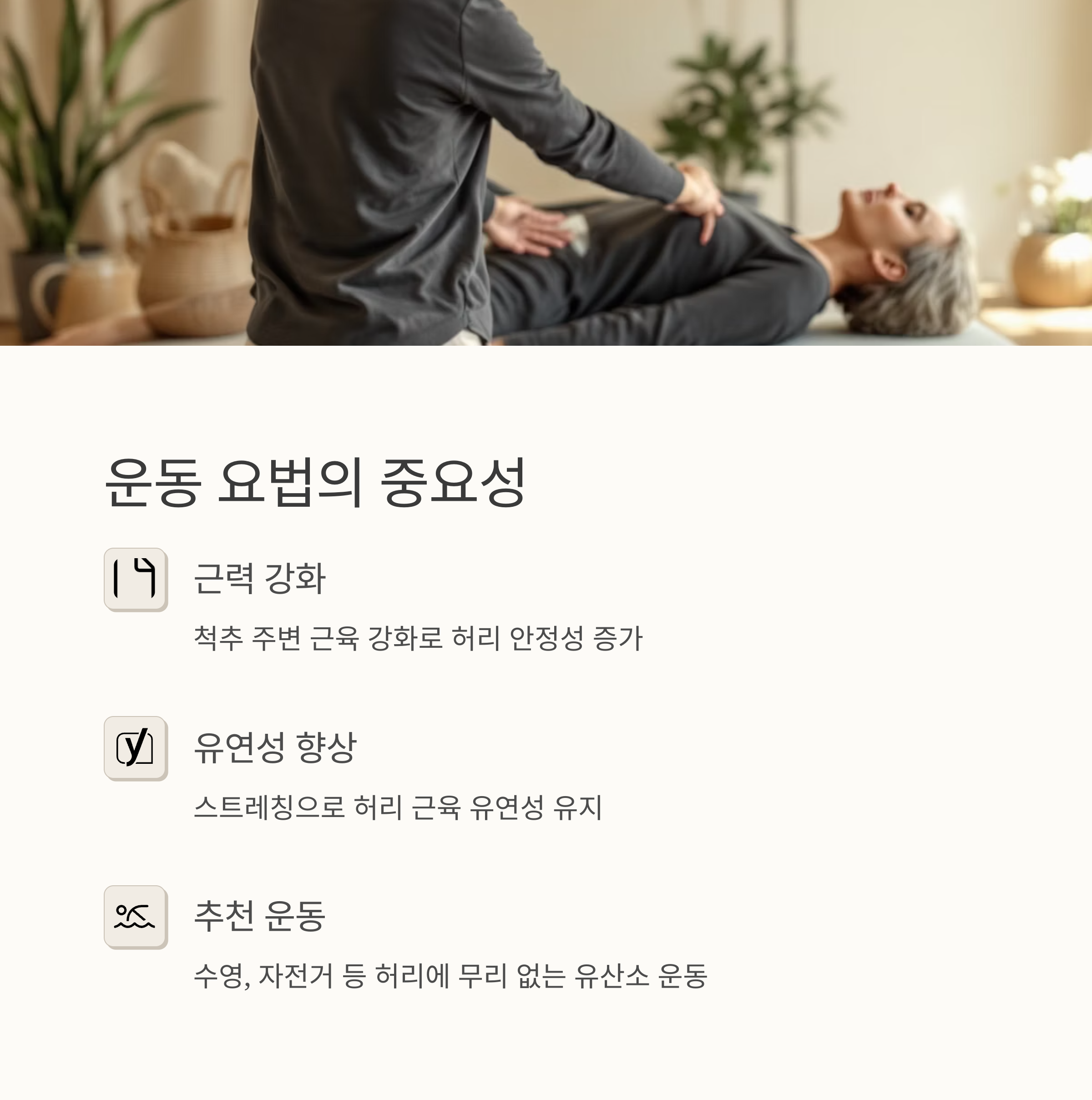 그리고 꾸준한 스트레칭을 통해 허리 근육의 유연성을 유지하는 것도 중요해요. 통증이 심하다면, 무리하지 않고 휴식을 취하는 것도 중요합니다.