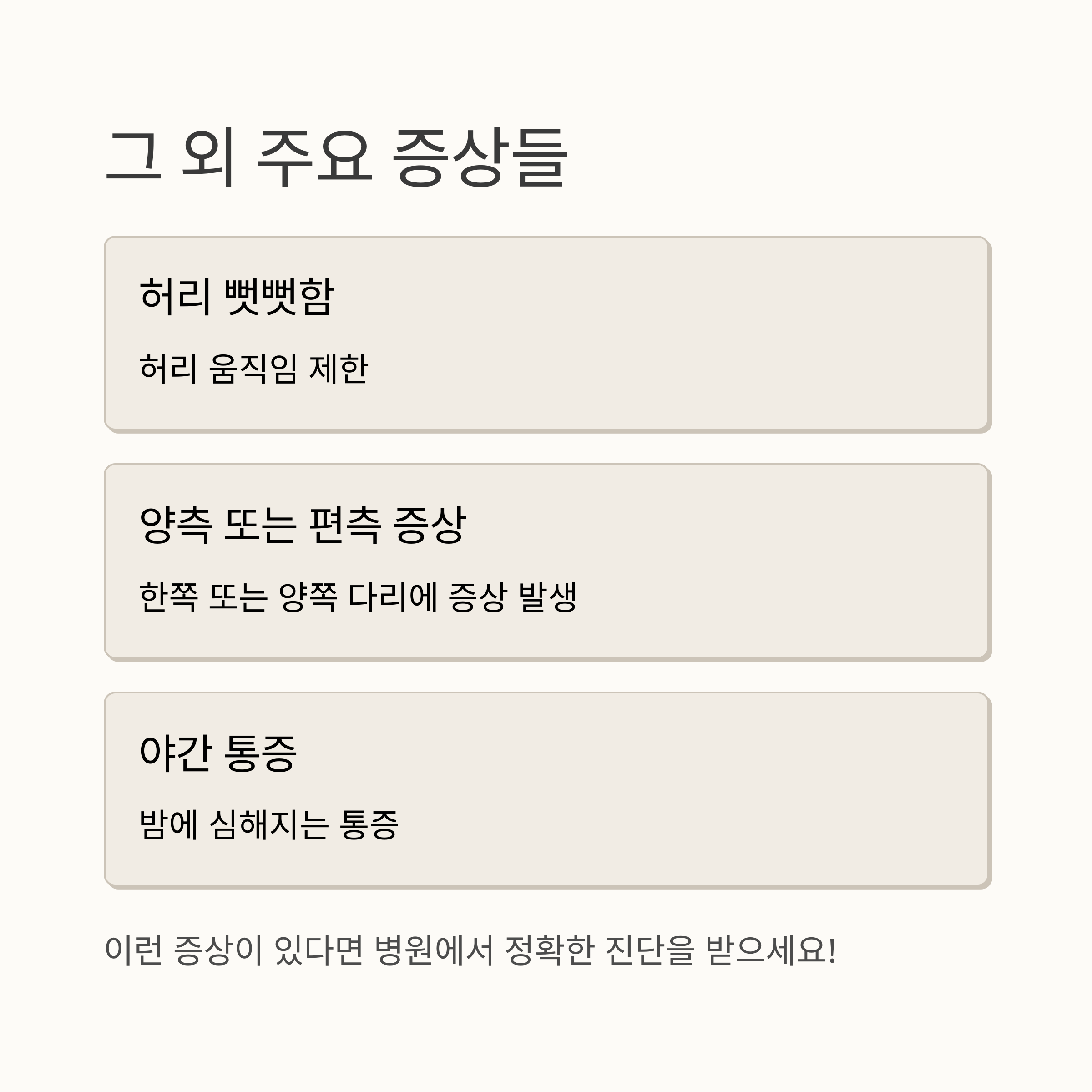 허리협착증 증상에 대한 정보가 도움이 되었으면 좋겠습니다. 허리 통증으로 고민하는 시간이 줄어들고, 건강한 생활을 되찾는 데 조금이나마 보탬이 되었기를 바랍니다. 오늘부터 작은 습관 하나라도 바꿔보세요. 우리 함께 건강해져요!