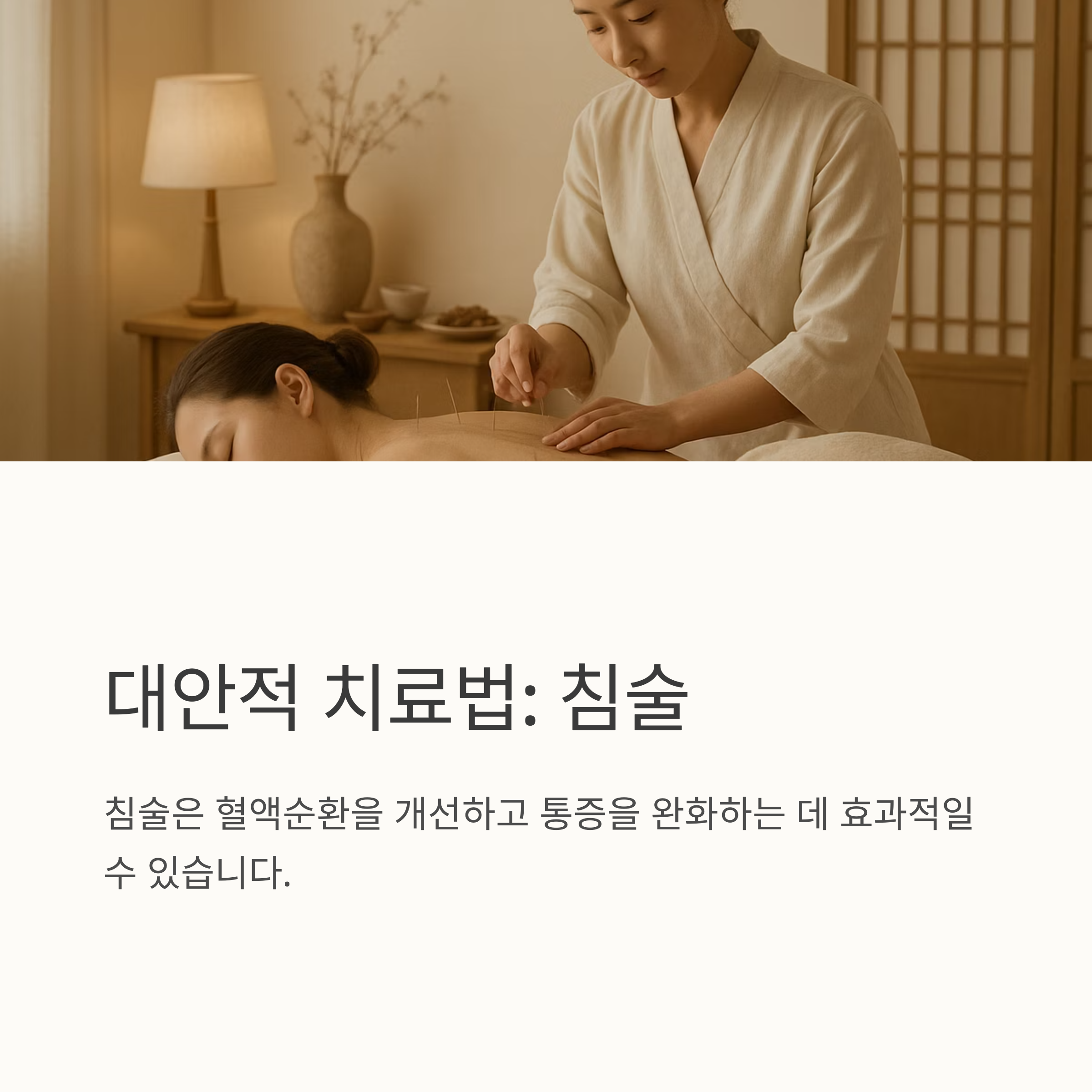 병원 치료 외에도 요가, 필라테스, 침술, 카이로프랙틱 같은 대안적인 치료법도 있어요. 요가나 필라테스는 근육을 이완시키고 유연성을 높이는 데 도움이 되고, 침술은 혈액순환을 개선하고 통증을 완화하는 데 효과적일 수 있다고 하네요. 카이로프랙틱은 척추의 균형을 맞춰 통증을 줄이는 방법이죠.