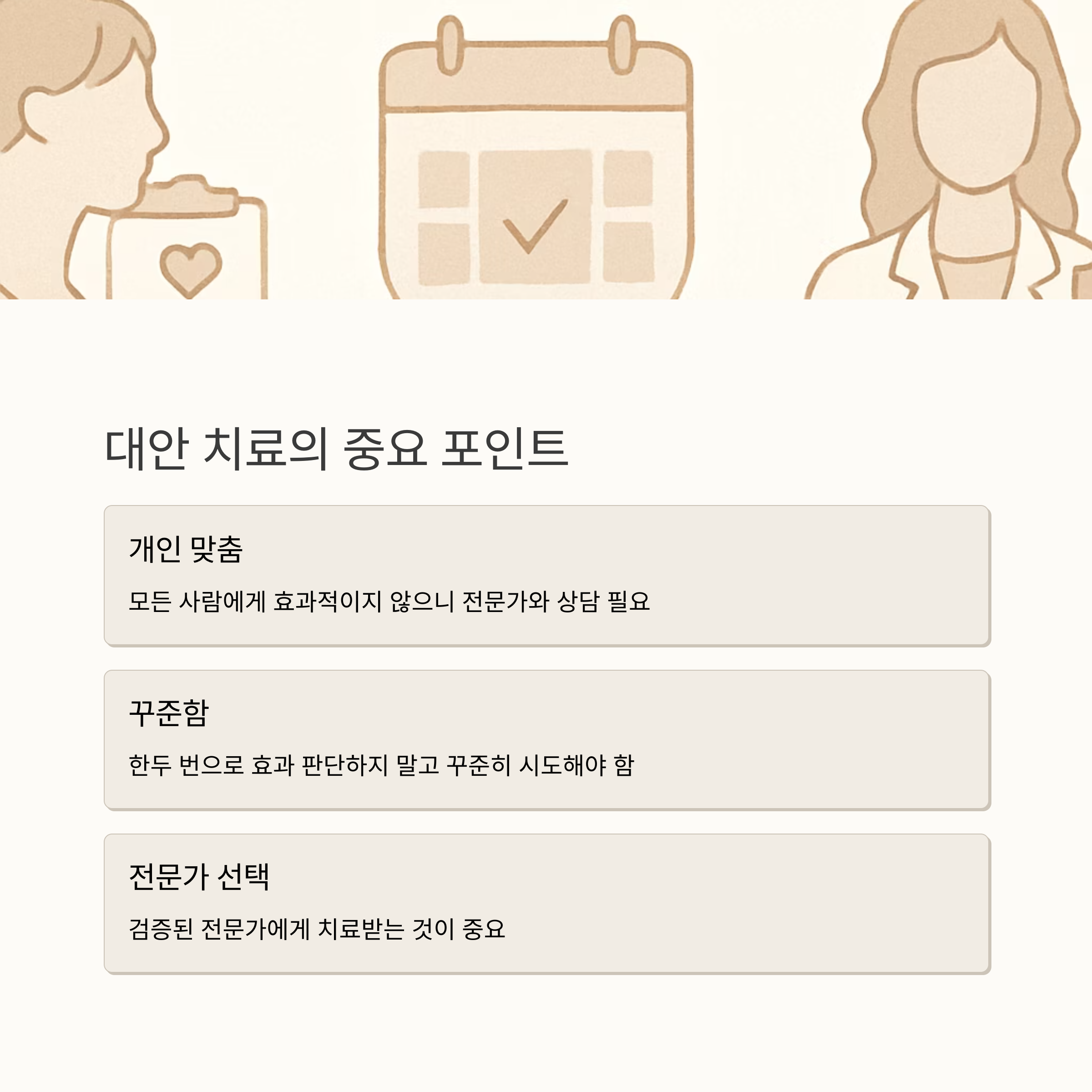 하지만 이런 대안 치료법도 모든 사람에게 효과가 있는 건 아니고, 나에게 맞는지 전문가와 상담 후 신중하게 선택해야 해요. 그리고 무엇보다 중요한 건, 꾸준히 하는 거예요. 한두 번 해보고 효과가 없다고 포기하지 말고, 꾸준히 해야 효과를 볼 수 있다는 점 기억해주세요.