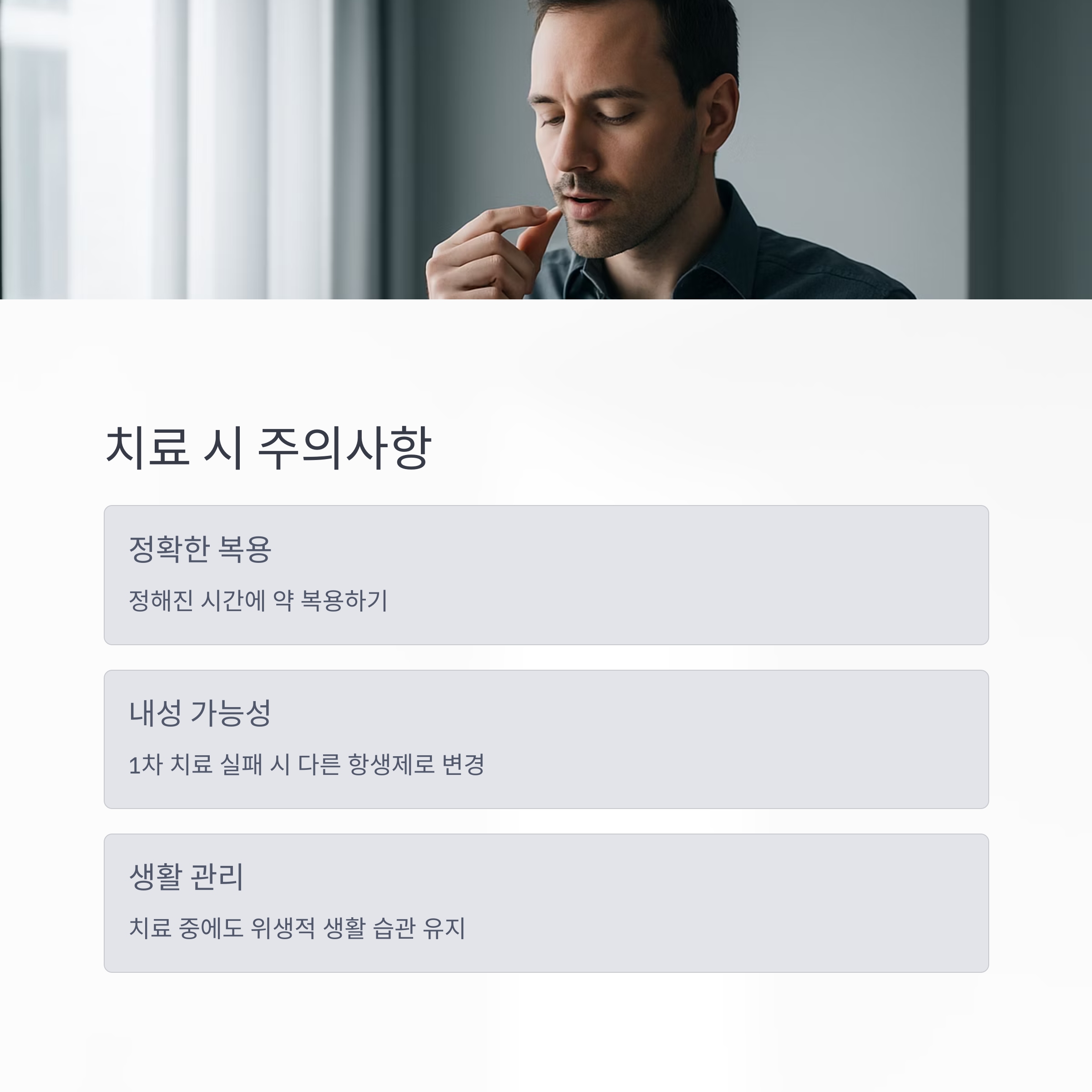 이 경우에는 의사의 판단에 따라 다른 항생제로 바꿔서 치료를 진행하게 됩니다. 치료 과정에서 중요한 점은, 정해진 시간에 정확하게 약을 복용하는 거예요. 그리고 치료 후에도 정기적인 검진을 통해 헬리코박터균이 완전히 제거되었는지 확인하는 것이 중요합니다. 치료 후에도 위생적인 식생활과 규칙적인 생활 습관을 유지하는 건 필수겠죠!