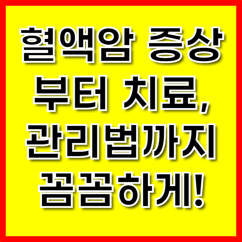 안녕하세요! 혹시 요즘 몸이 예전 같지 않다고 느끼시나요? 오늘은 우리 몸에 적신호를 보내는 혈액암에 대해 이야기해 보려고 해요. 혈액암 초기 증상부터 원인, 치료 방법, 그리고 치료 후 관리법까지, 여러분이 궁금해할 만한 정보들을 알차게 준비했으니 함께 알아볼까요?