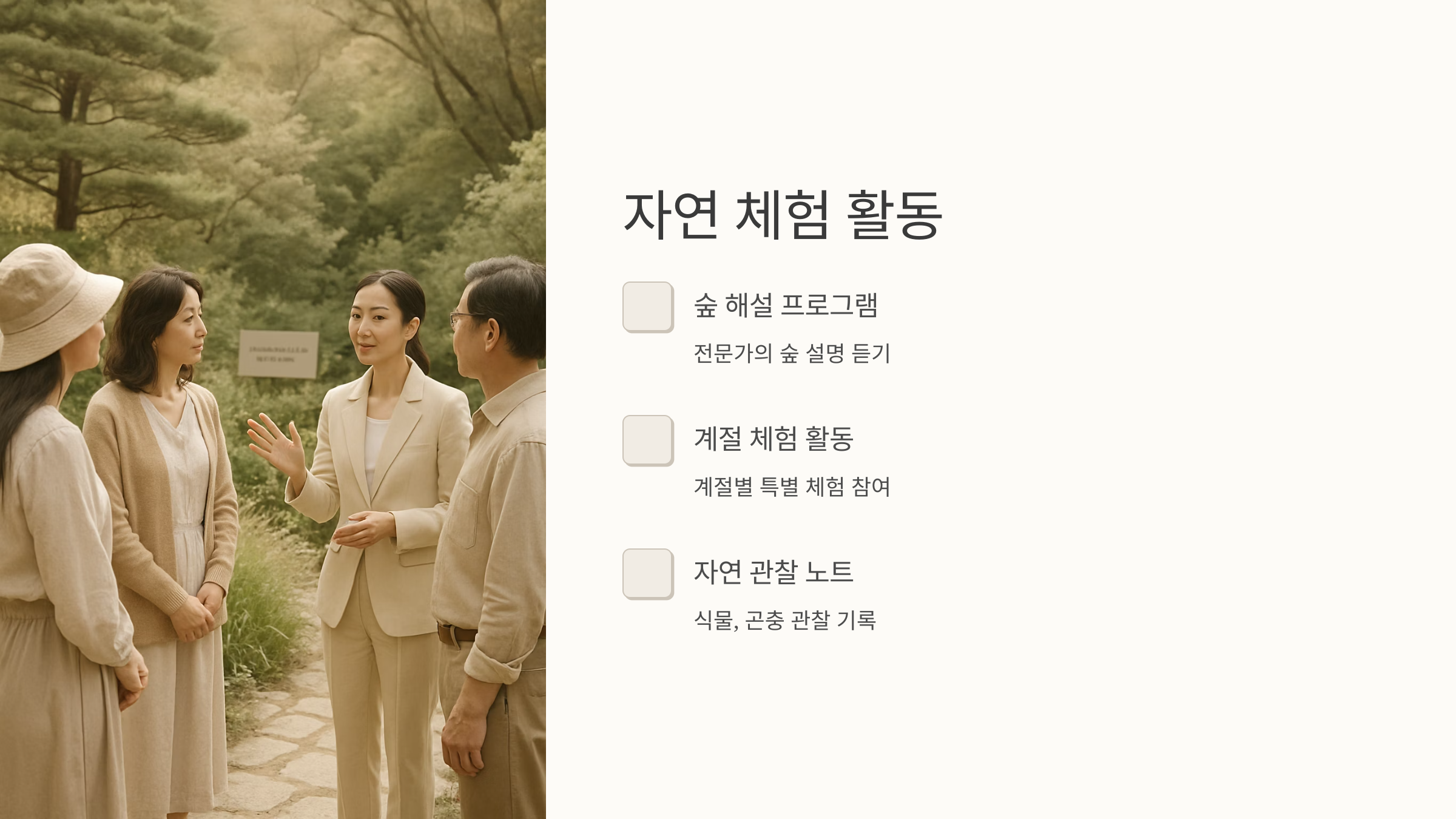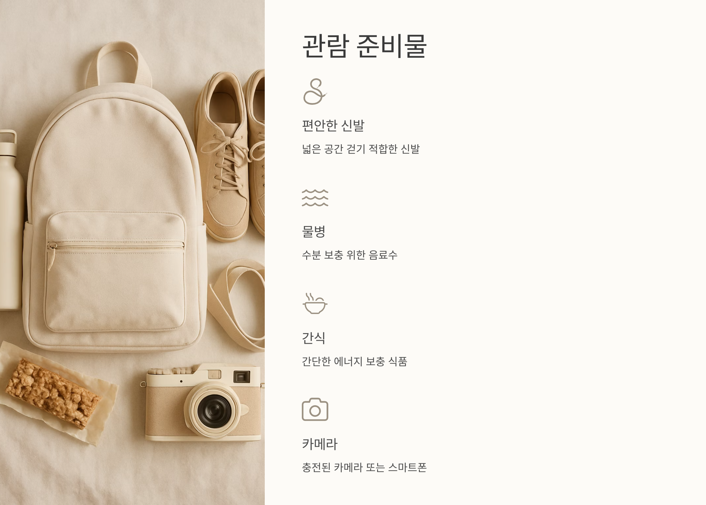 화담숲을 더욱 알차게 즐기고 싶다면? 몇 가지 팁을 알려드릴게요. 먼저, 화담숲은 꽤 넓은 공간이기 때문에 편안한 신발을 신고 가는 것이 좋아요. 그리고, 물병과 간단한 간식을 준비하면 더욱 편리하게 관람할 수 있답니다.