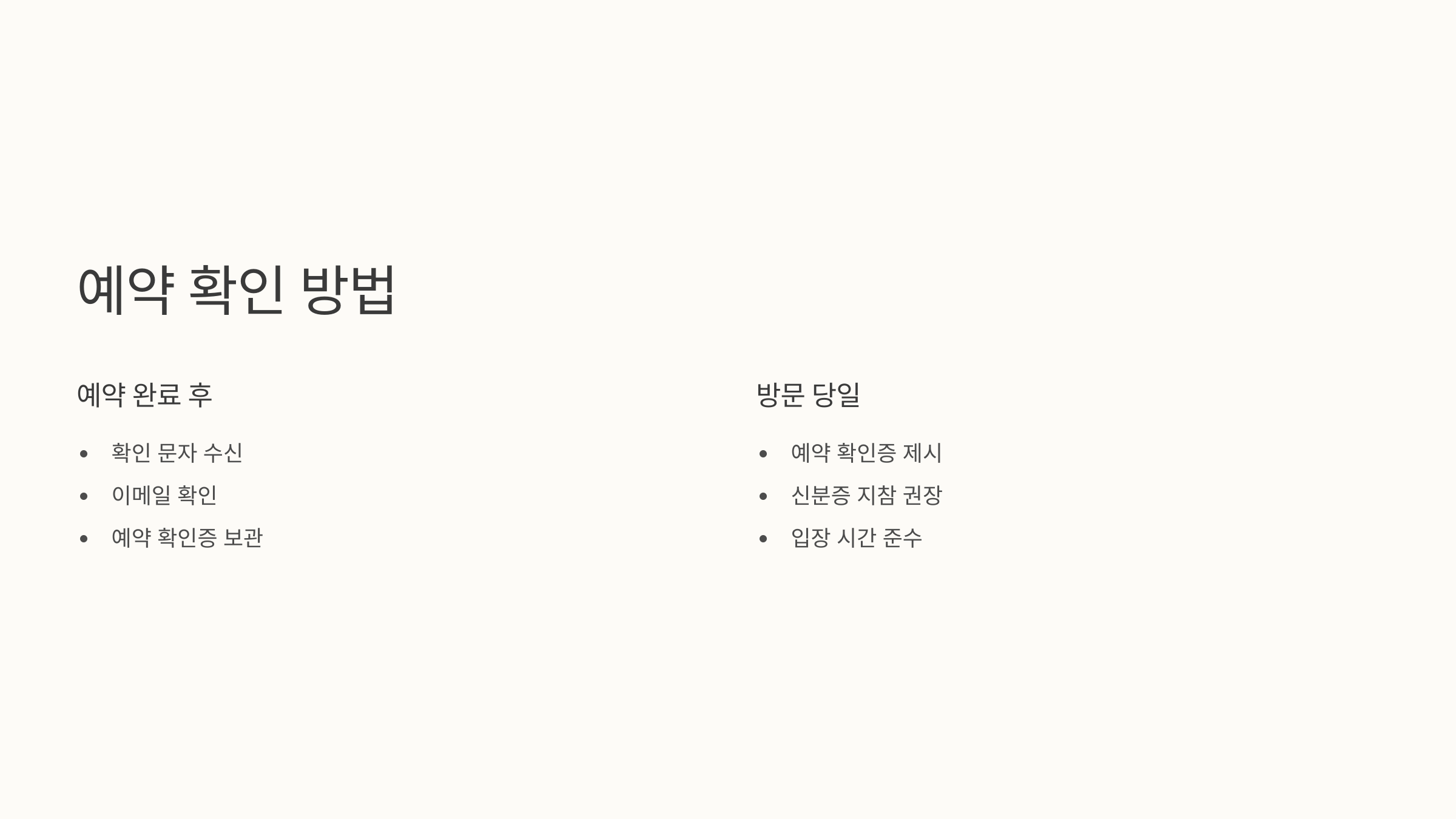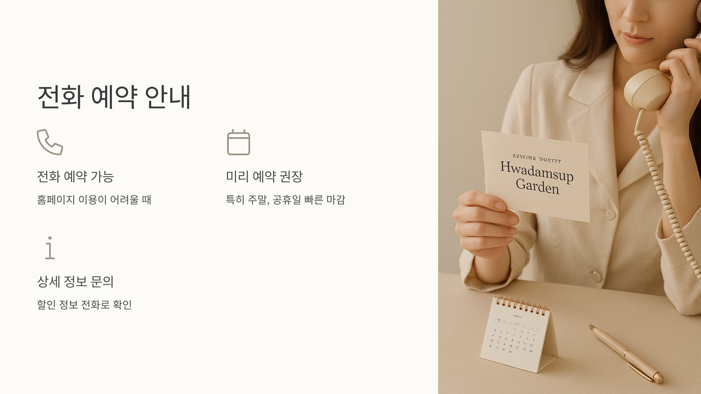 혹시 홈페이지가 어렵게 느껴진다면, 전화 예약도 가능하니 편한 방법으로 예약하세요. 예약은 미리미리 하는 게 좋으니, 여행 계획이 세워지면 바로 예약하는 걸 추천드려요. 특히 주말이나 공휴일에는 예약이 금방 마감될 수 있으니 서두르세요!