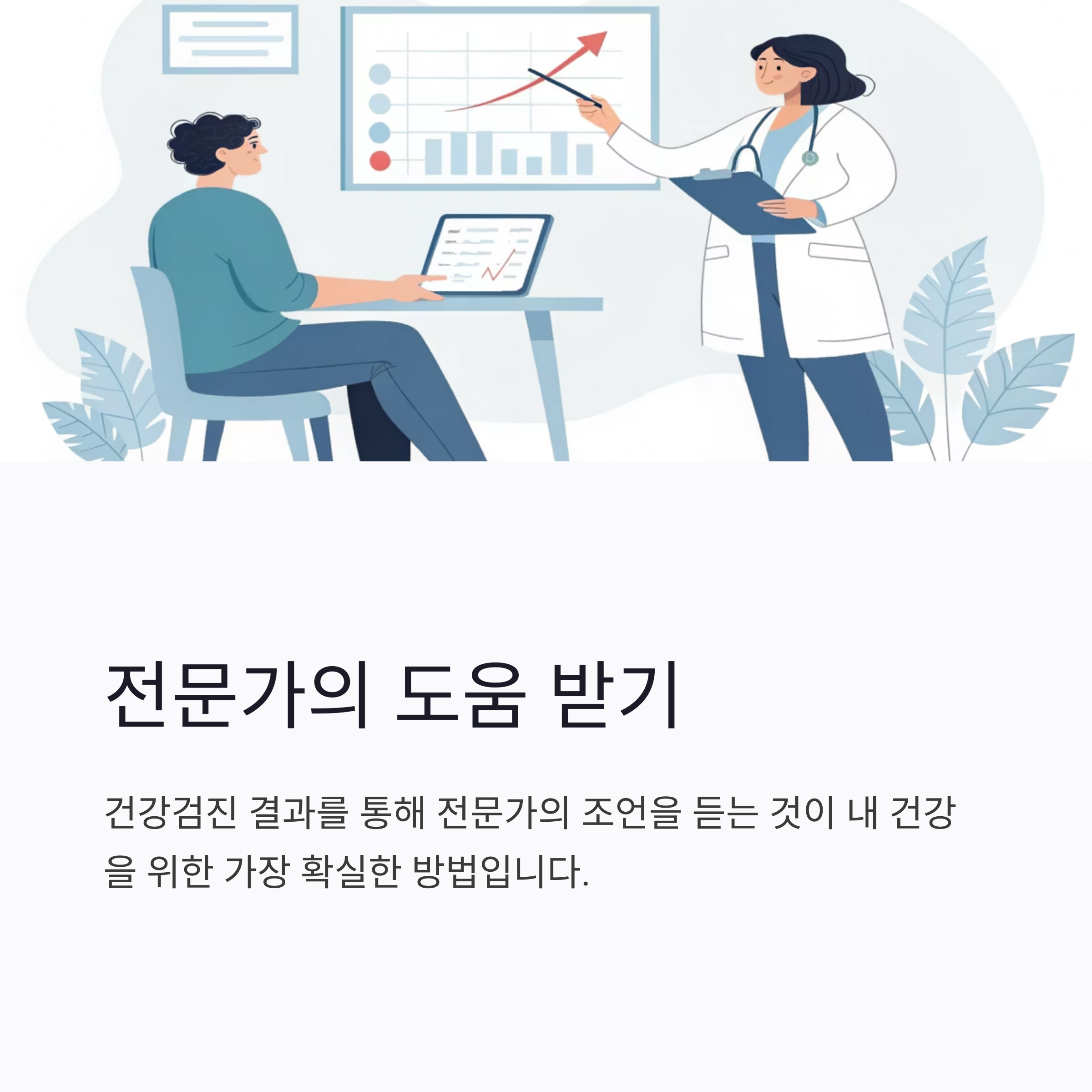 하지만 개인의 건강 상태나 위험 요인에 따라 검사 주기는 다를 수 있으니 의사와 상담하는 것을 추천드립니다. 건강검진 결과를 통해 전문가의 조언을 듣는 것은 내 건강을 위한 가장 확실한 방법입니다. 잊지 마시고 건강검진을 통해 내 몸 상태를 꼼꼼히 체크하고, 필요하다면 전문가의 도움을 받아 건강을 챙기세요.
