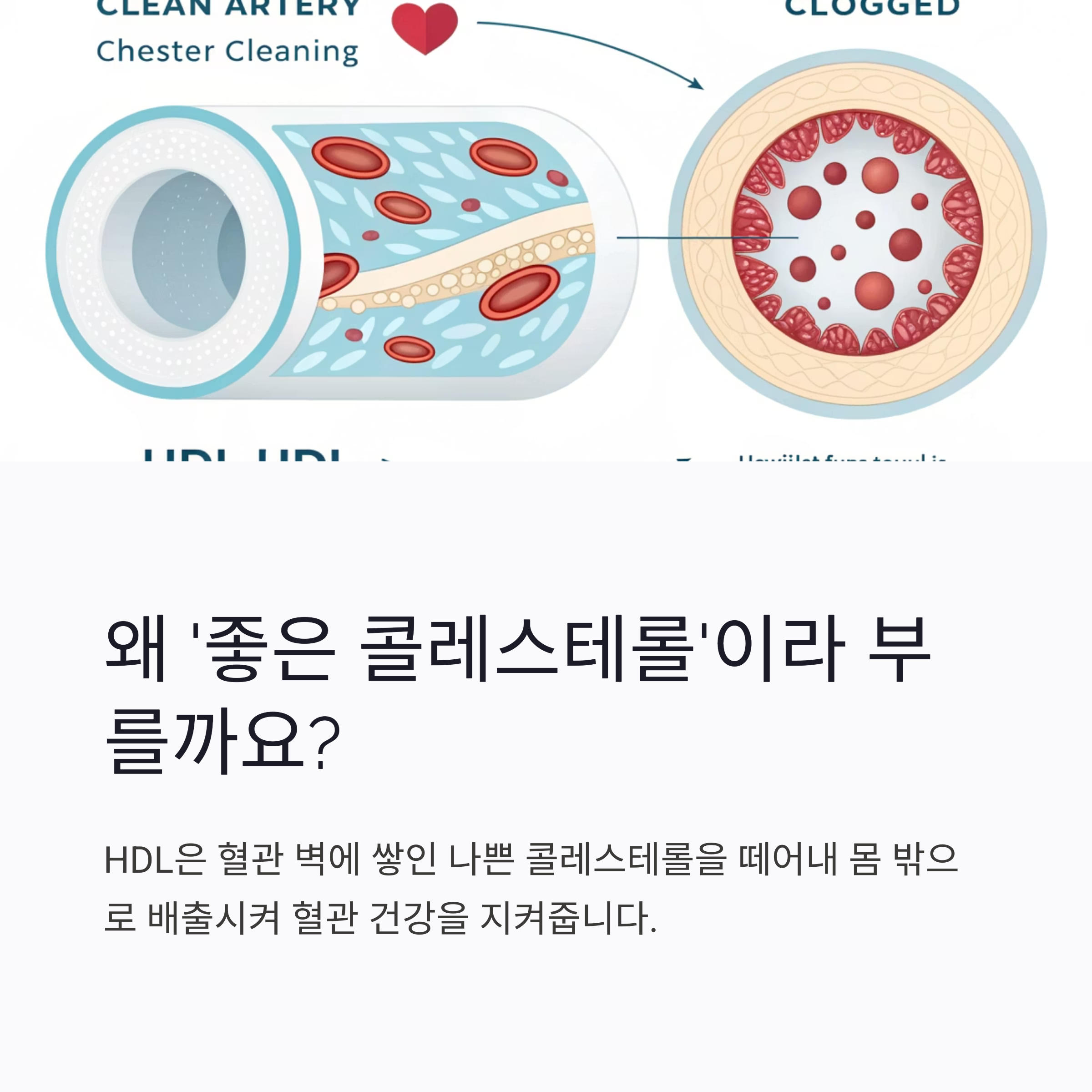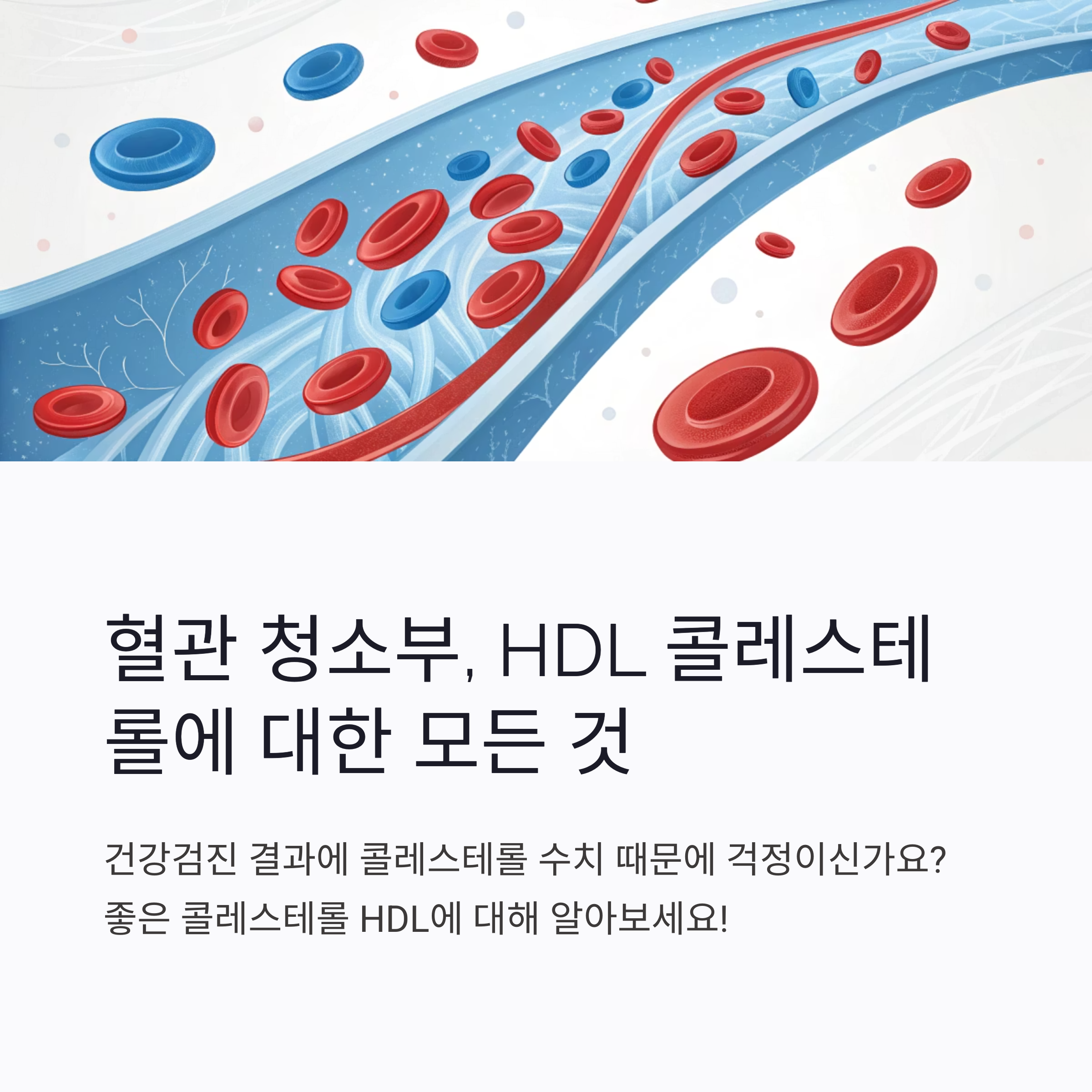 안녕하세요! 건강검진 결과에 콜레스테롤 수치 때문에 걱정이신가요? 오늘은 '좋은 콜레스테롤'이라고 불리는 HDL 콜레스테롤에 대해 속 시원하게 알아보는 시간을 갖도록 하겠습니다. HDL 콜레스테롤 이란 뭔지, 어떻게 관리해야 하는지, 궁금했던 모든 것을 쉽고 친절하게 설명해 드릴게요. 함께 건강한 혈관을 만들어가요!
